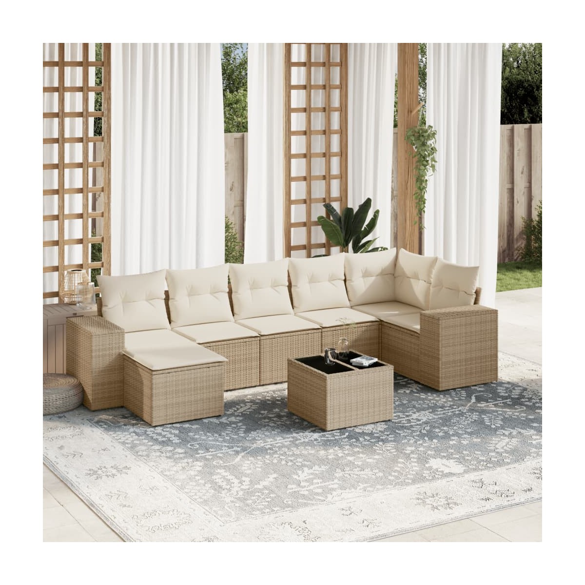 Este conjunto de sofás de jardín es el complemento perfecto para el jardín, terraza o patio, ya que proporciona un espacio confortable y acogedor para charlar con familiares y amigos o simplemente relajarte y disfrutar del aire libre. Material duradero: El ratán PE, también conocido como ratán sintético, es un material sintético resistente y de bajo mantenimiento que se parece al ratán natural. Es ligero, fácil de limpiar y se usa comúnmente para muebles de exterior debido a su durabilidad y propiedades resistentes a la intemperie.Función de almacenamiento con bolsa resistente al agua: El mueble de jardín cuenta con espacio de almacenamiento debajo del asiento, completo con una bolsa resistente al agua para guardar cojines, juguetes y otros artículos. La bolsa interior se puede sujetar de forma segura a los muebles de exterior con cierres de gancho y bucle para mayor estabilidad.Superficie de vidrio: La superficie de la mesa de exterior es de vidrio templado resistente y duradero, por lo que es fácil de limpiar con un paño húmedo y añade un toque de elegancia a tu espacio exterior.Funda desenfundable y lavable: Estos cojines de asiento cuentan con fundas desenfundables para facilitar el lavado y mantenimiento.Diseño modular: Este conjunto de muebles de exterior tiene un diseño modular, por lo que es completamente flexible y fácil de mover, para que puedas crear una disposición de muebles de exterior personalizada. Información útil:Para asegurarte de que tus muebles de exterior se mantengan hermosos, recomendamos protegerlos con una funda impermeable.