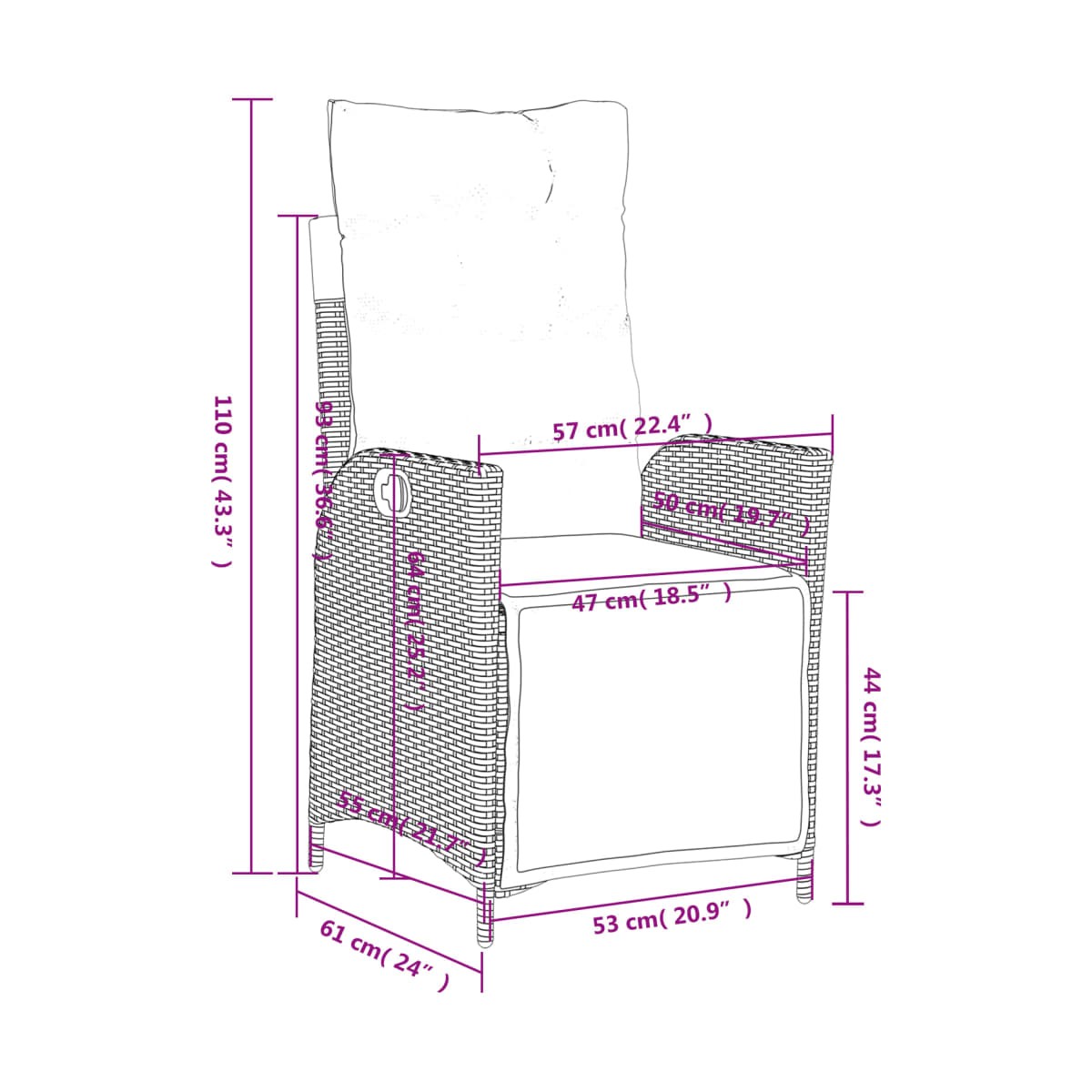 Este juego de comedor de jardín es una gran elección para comer al aire libre o simplemente para relajarte en el jardín, el patio o la terraza. Material duradero: El ratán PE, también conocido como ratán sintético, es un material sintético resistente y de bajo mantenimiento que se parece al ratán natural. Es ligero, fácil de limpiar y se usa comúnmente para muebles de exterior debido a su durabilidad y propiedades resistentes a la intemperie.Respaldo ajustable: Este asiento de jardín tiene un asa. Puedes ajustar el respaldo a cualquier posición tirando del asa y devolverlo rápidamente a su posición original.Tablero ajustable: El tablero de la mesa se puede levantar para que la mesa sea más alta, lo que transforma la mesa al aire libre de una mesa de café a una mesa de comedor. Es perfecto para invitar a invitados o comer al aire libre.Funda desenfundable y lavable: Estos cojines de asiento cuentan con fundas desenfundables para facilitar el lavado y mantenimiento. Los cojines del respaldo tienen una solapa en la parte posterior para facilitar la fijación a los respaldos.Experiencia de asiento cómoda: Estos muebles de exterior, completos con cojines acolchados gruesos, ofrecen una experiencia de asiento cómoda. Información útil:Para asegurarte de que tus muebles de exterior se mantengan hermosos, recomendamos protegerlos con una funda impermeable.