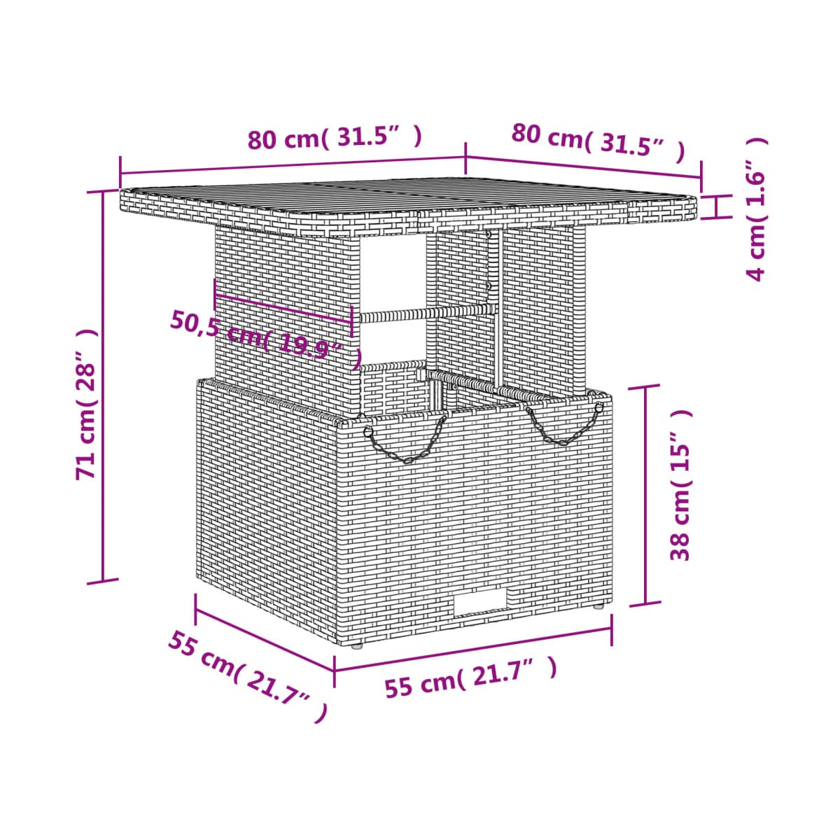 - Dimensiones de la mesa: 80 x 80 x 40/71 cm (largo x ancho x alto)