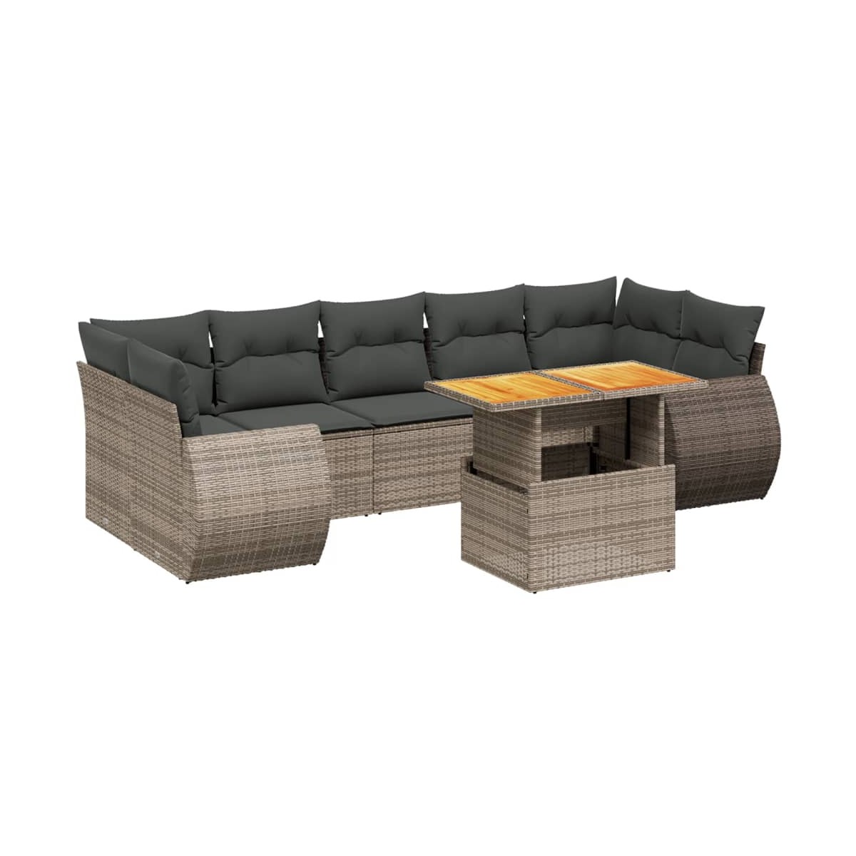 Este conjunto de sofás de jardín es el complemento perfecto para el jardín, terraza o patio, ya que proporciona un espacio confortable y acogedor para charlar con familiares y amigos o simplemente relajarte y disfrutar del aire libre. Material duradero: El ratán PE, también conocido como ratán sintético, es un material sintético resistente y de bajo mantenimiento que se parece al ratán natural. Es ligero, fácil de limpiar y se usa comúnmente para muebles de exterior debido a su durabilidad y propiedades resistentes a la intemperie.Tablero ajustable: El tablero de la mesa se puede levantar para que la mesa sea más alta, lo que transforma la mesa de jardín de una mesa de centro a una mesa de comedor. Es perfecta para invitar a invitados o comer al aire libre.Experiencia de asiento cómoda: Estos muebles de exterior, completos con cojines acolchados gruesos, ofrecen una experiencia de asiento cómoda.Funda desenfundable y lavable: Estos cojines de asiento cuentan con fundas desenfundables para facilitar el lavado y mantenimiento.Diseño modular: Este conjunto de muebles de exterior tiene un diseño modular, por lo que es completamente flexible y fácil de mover, para que puedas crear una disposición de muebles de exterior personalizada. Información útil:Para asegurarte de que tus muebles de exterior se mantengan hermosos, recomendamos protegerlos con una funda impermeable.
