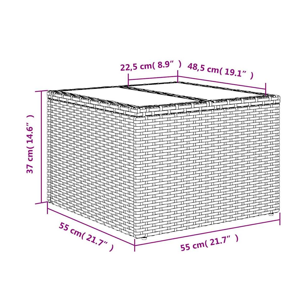 - Dimensiones: 55 x 55 x 37 cm (largo x ancho x alto)