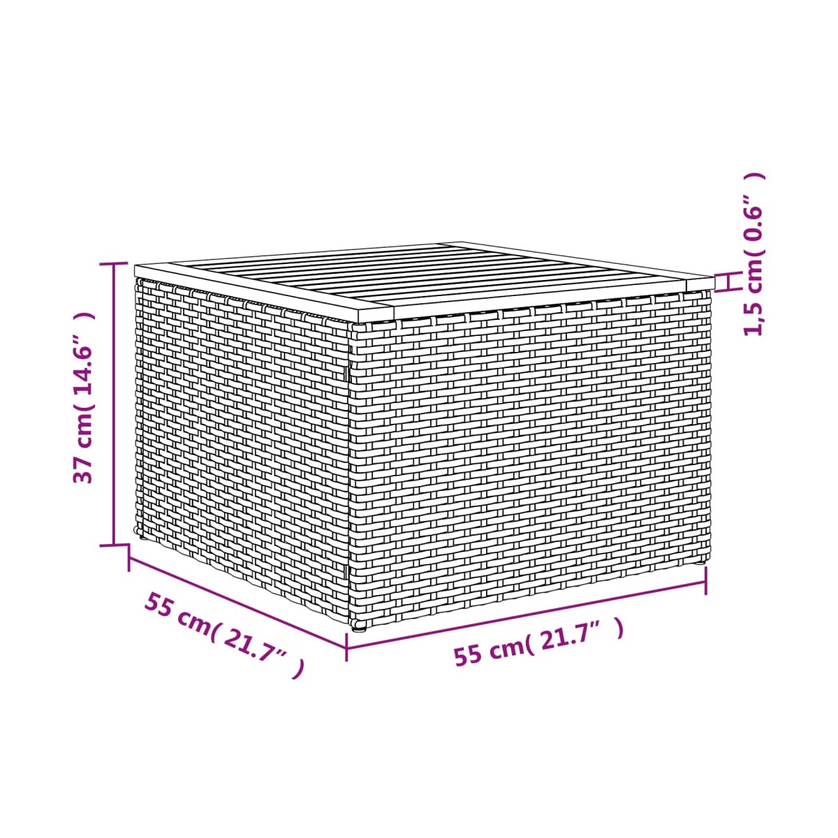 - Dimensiones: 55 x 55 x 37 cm (largo x ancho x alto)