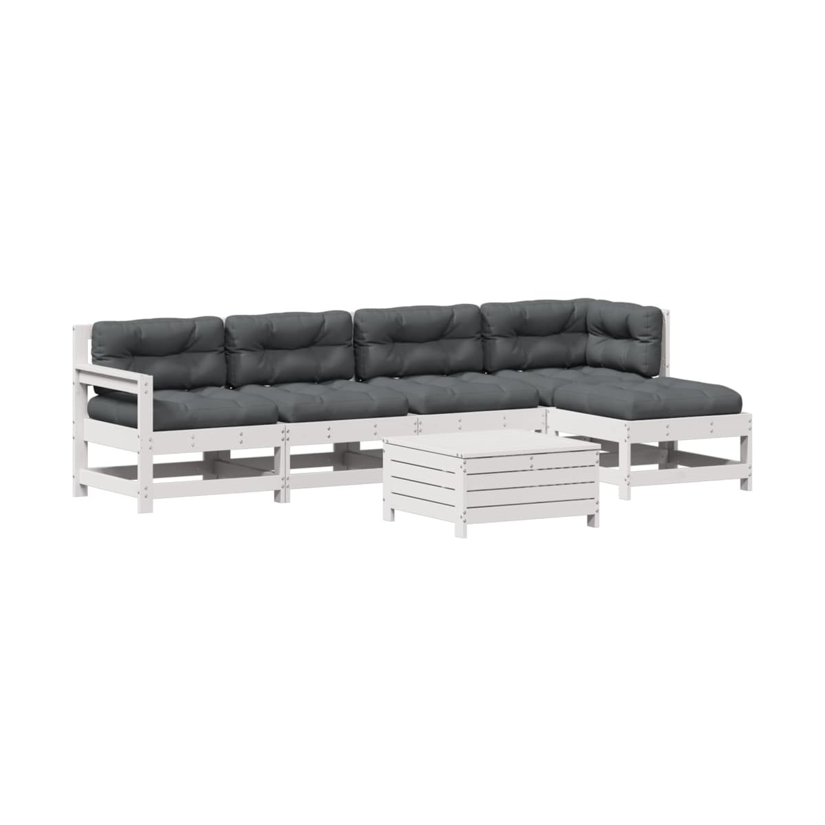 Este juego de sofás de jardín de madera, con un diseño de listones, será un gran complemento para el jardín, el patio o la terraza, para poder disfrutar de un rato agradable con la familia o los amigos. Madera de pino maciza: La madera de pino maciza es un bonito material natural. La madera de pino tiene vetas rectas, y los nudos dan al material su distintivo aspecto rústico.Diseño de listones: El diseño de listones de la silla de jardín de madera evita la acumulación de agua, manteniendo el asiento seco y evitando que se pudra innecesariamente.Cómodo asiento: El respaldo y el reposabrazos aportan un plus de comodidad al juego de muebles de jardín. Además, el cojín grueso y acolchado proporciona comodidad al asiento.Uso versátil: La otomana de exterior con tapa no solo se puede usar para sentarse o relajar los pies, sino que también se puede usar como mesa de centro para poner las bebidas y la comida. El mueble de jardín cuentan con espacio de almacenamiento debajo del asiento. Diseño modular: Este conjunto de muebles de exterior tiene un diseño modular, por lo que es completamente flexible y fácil de mover, para que puedas crear una disposición de muebles de exterior personalizada. Información útil:Para asegurarte de que tus muebles de exterior se mantengan hermosos, recomendamos protegerlos con una funda impermeable.