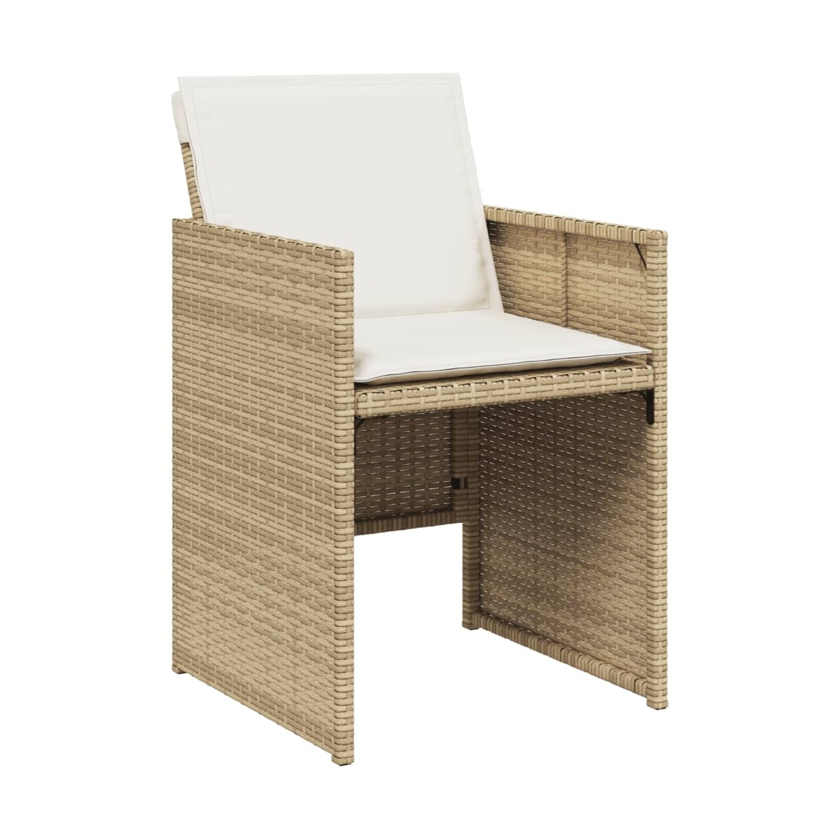 Este juego de comedor de jardín es una gran elección para comer al aire libre o simplemente para relajarte en el jardín, el patio o la terraza. Material duradero: El ratán PE, también conocido como ratán sintético, es un material sintético resistente y de bajo mantenimiento que se parece al ratán natural. Es ligero, fácil de limpiar y se usa comúnmente para muebles de exterior debido a su durabilidad y propiedades resistentes a la intemperie.Almacenamiento compacto: Estas sillas tienen un respaldo con solapa que se puede plegar, lo que facilita guardarlas debajo de la mesa. Cuando están plegadas, caben perfectamente debajo de la mesa, formando un cubo que ahorra espacio. Además, los taburetes también se pueden guardar debajo de las sillas, maximizando aún más la eficiencia del espacio. Experiencia de asiento cómoda: Estos muebles de exterior, completos con cojines acolchados gruesos, ofrecen una experiencia de asiento cómoda.Funda desenfundable y lavable: Estos cojines de asiento cuentan con fundas desenfundables para facilitar el lavado y mantenimiento.Superficie estable y fácil de limpiar: Esta mesa de jardín tiene una superficie de madera de acacia que es resistente, duradero y fácil de limpiar con un paño húmedo. Información útil: Para asegurarte de que tus muebles de exterior se mantengan hermosos, recomendamos protegerlos con una funda impermeable.