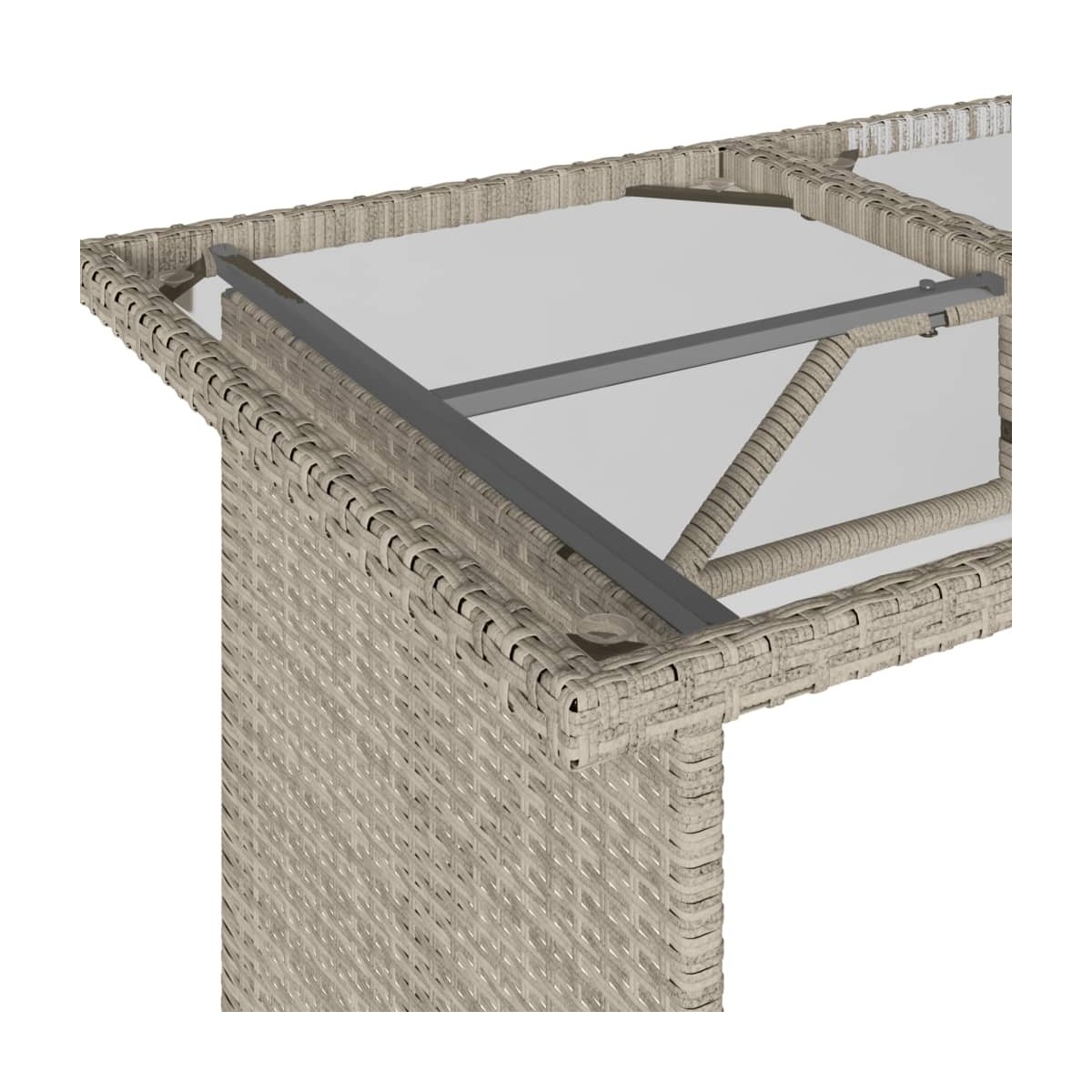 - Material: Ratán PE, acero con recubrimiento en polvo, vidrio templado
