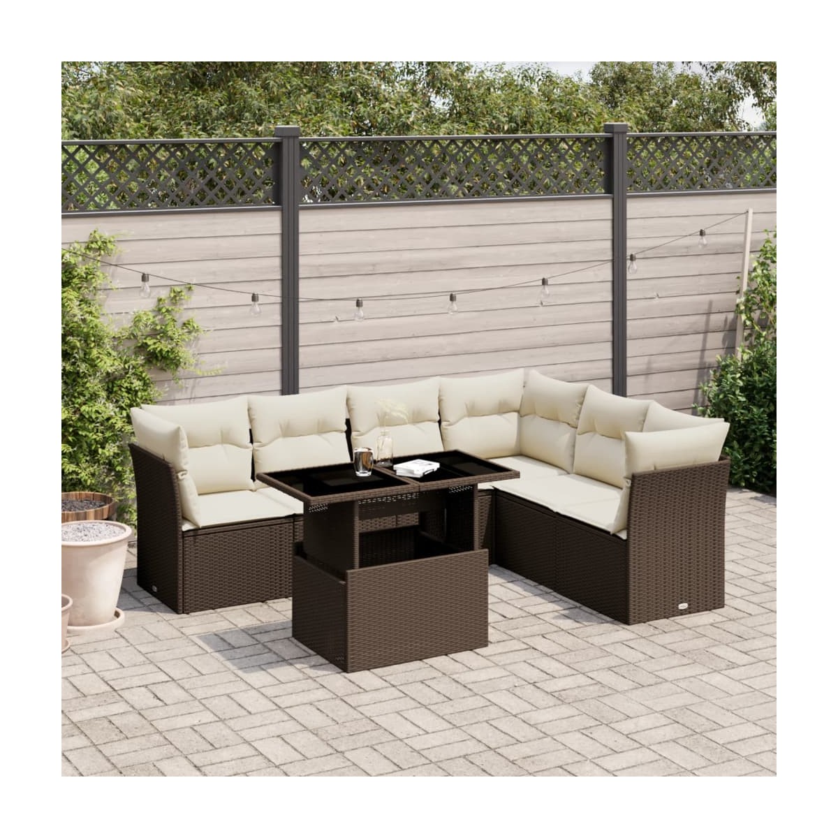 Este conjunto de sofás de jardín es el complemento perfecto para el jardín, terraza o patio, ya que proporciona un espacio confortable y acogedor para charlar con familiares y amigos o simplemente relajarte y disfrutar del aire libre. Material duradero: El ratán PE, también conocido como ratán sintético, es un material sintético resistente y de bajo mantenimiento que se parece al ratán natural. Es ligero, fácil de limpiar y se usa comúnmente para muebles de exterior debido a su durabilidad y propiedades resistentes a la intemperie.Tablero ajustable: El tablero de la mesa se puede levantar para que la mesa sea más alta, lo que transforma la mesa al aire libre de una mesa de café a una mesa de comedor. Es perfecto para invitar a invitados o comer al aire libre.Experiencia de asiento cómoda: Estos muebles de exterior, completos con cojines acolchados gruesos, ofrecen una experiencia de asiento cómoda.Funda desenfundable y lavable: Estos cojines de asiento cuentan con fundas desenfundables para facilitar el lavado y mantenimiento.Diseño modular: Este conjunto de muebles de exterior tiene un diseño modular, por lo que es completamente flexible y fácil de mover, para que puedas crear una disposición de muebles de exterior personalizada. Información útil:Para asegurarte de que tus muebles de exterior se mantengan hermosos, recomendamos protegerlos con una funda impermeable.