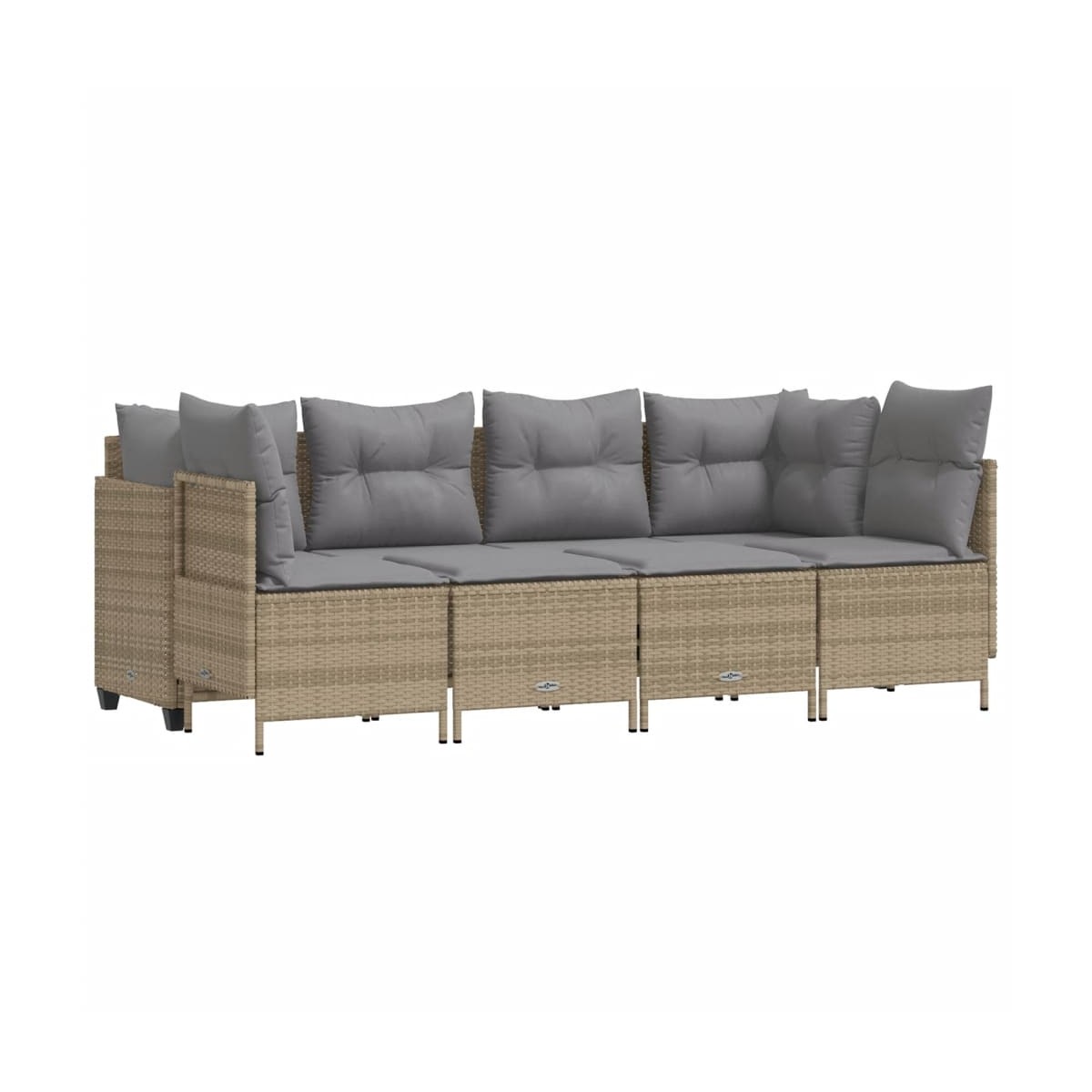 Este conjunto de sofás de jardín es el complemento perfecto para el jardín, terraza o patio, ya que proporciona un espacio confortable y acogedor para charlar con familiares y amigos o simplemente relajarte y disfrutar del aire libre. Material duradero: El ratán PE, también conocido como ratán sintético, es un material sintético resistente y de bajo mantenimiento que se parece al ratán natural. Es ligero, fácil de limpiar y se usa comúnmente para muebles de exterior debido a su durabilidad y propiedades resistentes a la intemperie.Experiencia de asiento cómoda: Estos muebles de exterior, completos con cojines acolchados gruesos, ofrecen una experiencia de asiento cómoda.Reposapiés versátil: El taburete es versátil y sirve como un cómodo reposapiés para cuando descanses en el sofá o como asiento adicional en tu jardín.Funda desenfundable y lavable: Estos cojines de asiento cuentan con fundas desenfundables para facilitar el lavado y mantenimiento.Estructura robusta y estable: La estructura de acero con recubrimiento en polvo garantiza que el mueble de jardín sea resistente y estable para usarlo a diario al aire libre. Información útil:Para asegurarte de que tus muebles de exterior se mantengan hermosos, recomendamos protegerlos con una funda impermeable.