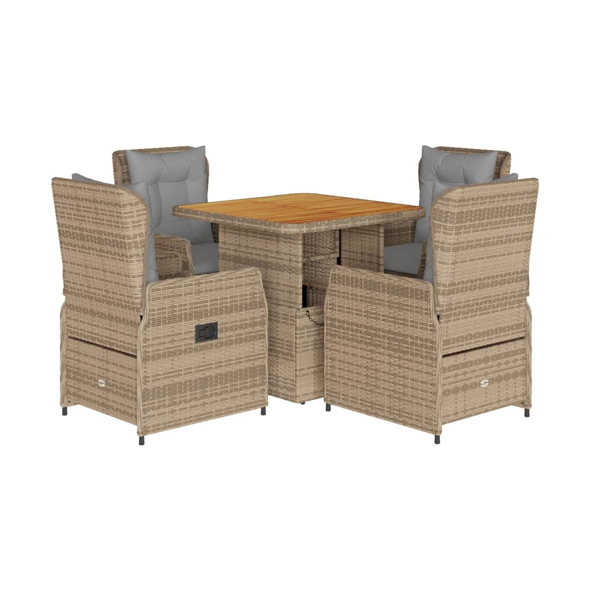Este juego de comedor de jardín es una gran elección para comer al aire libre o simplemente para relajarte en el jardín, el patio o la terraza. Material duradero: El ratán PE, también conocido como ratán sintético, es un material sintético resistente y de bajo mantenimiento que se parece al ratán natural. Es ligero, fácil de limpiar y se usa comúnmente para muebles de exterior debido a su durabilidad y propiedades resistentes a la intemperie.Respaldo ajustable: Este asiento de jardín tiene un asa. Puedes ajustar el respaldo a cualquier posición tirando del asa y devolverlo rápidamente a su posición original.Funda extraíble y lavable: El cojín del asiento cuenta con una funda extraíble para facilitar el lavado y mantenimiento.Tablero ajustable: El tablero de la mesa se puede levantar para que la mesa sea más alta, lo que transforma la mesa al aire libre de una mesa de café a una mesa de comedor. Es perfecto para invitar a invitados o comer al aire libre.Superficie estable y fácil de limpiar: Esta mesa de jardín tiene una superficie de madera de acacia que es resistente, duradero y fácil de limpiar con un paño húmedo. Información útil:Para asegurarte de que tus muebles de exterior se mantengan hermosos, recomendamos protegerlos con una funda impermeable.