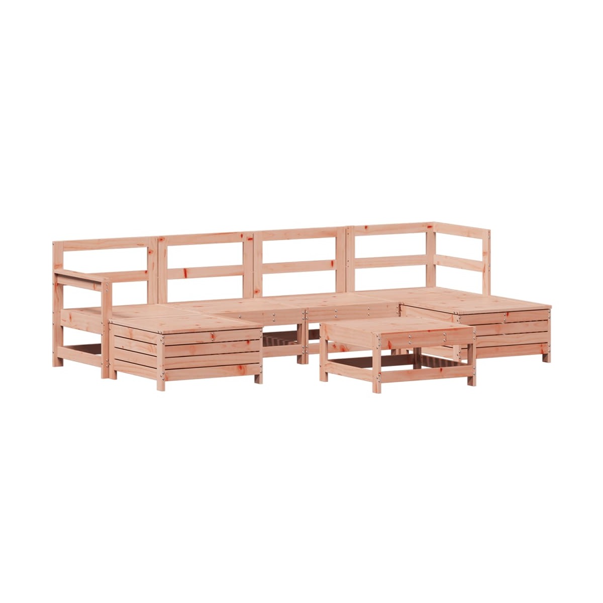 Este juego de sofás de jardín de madera, con un diseño de listones, será un gran complemento para el jardín, el patio o la terraza, para poder disfrutar de un rato agradable con la familia o los amigos. Material resistente y duradero: La madera de abeto Douglas es conocida por su resistencia y durabilidad. Su intenso color marrón rojizo y su veteado único transmiten un ambiente cálido y natural. Con una buena estabilidad y resistencia a la intemperie, es ideal para fabricar muebles de interior y exterior. Buena ventilación y prevención de encharcamientos: El diseño de rejilla favorece un flujo de aire óptimo y evita eficazmente la acumulación de agua, lo que garantiza un asiento seco y cómodo. Uso versátil: El taburete de jardín no solo se puede usar para sentarse o relajar los pies, sino que también se puede usar como mesa de centro para guardar bebidas, comida y otros adornos. Diseño modular: Este conjunto de muebles de exterior tiene un diseño modular, por lo que es completamente flexible y fácil de mover, para que puedas crear una disposición de muebles de exterior personalizada. Información útil:Para asegurarte de que tus muebles de exterior se mantengan hermosos, recomendamos protegerlos con una funda impermeable.