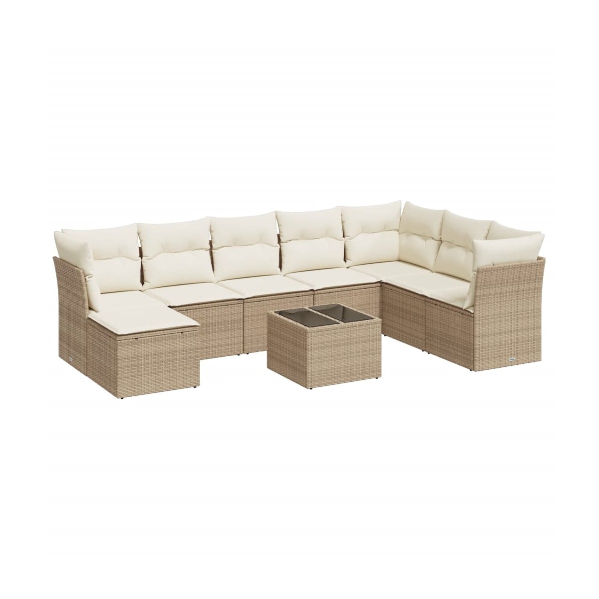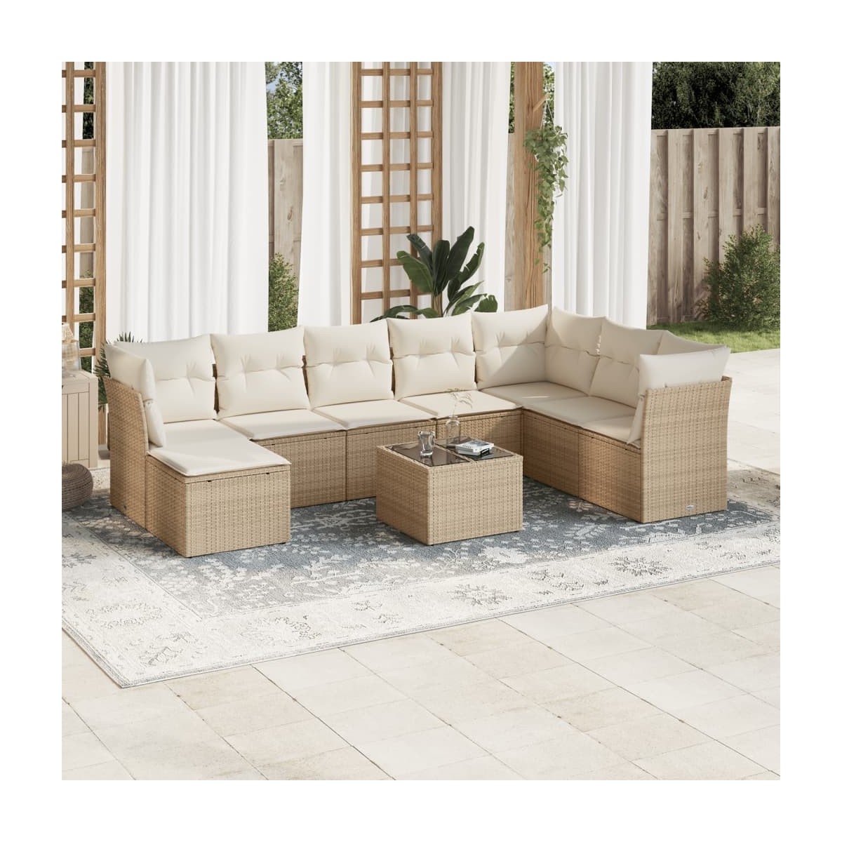 Este conjunto de sofás de jardín es el complemento perfecto para el jardín, terraza o patio, ya que proporciona un espacio confortable y acogedor para charlar con familiares y amigos o simplemente relajarte y disfrutar del aire libre. Material duradero: El ratán de PE, también conocido como ratán sintético, es un material sintético resistente y de bajo mantenimiento que se parece al ratán natural. Es ligero, fácil de limpiar y se usa comúnmente para muebles de exterior debido a su durabilidad y propiedades resistentes a la intemperie.Función de almacenaje con bolsa impermeable: Cada asiento de jardín cuenta con espacio de almacenamiento debajo del asiento, completo con una bolsa resistente al agua para guardar cojines, juguetes y otros artículos. Las bolsas interiores tienen una cubierta superior y pueden fijarse firmemente a los asientos con cierres adhesivos para mayor estabilidad.Superficie de vidrio: La superficie de la mesa de exterior es de vidrio templado resistente y duradero, por lo que es fácil de limpiar con un paño húmedo y añade un toque de elegancia a tu espacio exterior.Funda desenfundable y lavable: Estos cojines de asiento cuentan con fundas desenfundables para facilitar el lavado y mantenimiento.Diseño modular: Este conjunto de muebles de exterior tiene un diseño modular, por lo que es completamente flexible y fácil de mover, para que puedas crear una disposición de muebles de exterior personalizada. Información útil:Para asegurarte de que tus muebles de exterior se mantengan hermosos, recomendamos protegerlos con una funda impermeable.