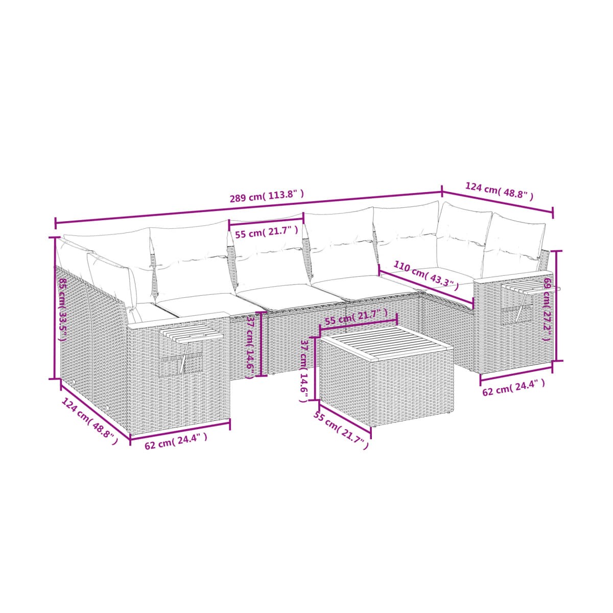 Este conjunto de sofás de jardín es el complemento perfecto para el jardín, terraza o patio, ya que proporciona un espacio confortable y acogedor para charlar con familiares y amigos o simplemente relajarte y disfrutar del aire libre. Material duradero: El ratán PE, también conocido como ratán sintético, es un material sintético resistente y de bajo mantenimiento que se parece al ratán natural. Es ligero, fácil de limpiar y se usa comúnmente para muebles de exterior debido a su durabilidad y propiedades resistentes a la intemperie.Función de almacenamiento con bolsa resistente al agua: El mueble de jardín cuenta con espacio de almacenamiento debajo del asiento, completo con una bolsa resistente al agua para guardar cojines, juguetes y otros artículos. La bolsa interior se puede sujetar de forma segura a los muebles de exterior con cierres de gancho y bucle para mayor estabilidad.Cómoda mesa auxiliar: Este mueble de exterior cuenta con una mesa auxiliar plegable con un resorte de gas en los reposabrazos, lo que proporciona un lugar conveniente para mantener tus elementos esenciales al alcance de la mano.Funda desenfundable y lavable: Estos cojines de asiento cuentan con fundas desenfundables para facilitar el lavado y mantenimiento.Diseño modular: Este conjunto de muebles de exterior tiene un diseño modular, por lo que es completamente flexible y fácil de mover, para que puedas crear una disposición de muebles de exterior personalizada. Información útil:Para asegurarte de que tus muebles de exterior se mantengan hermosos, recomendamos protegerlos con una funda impermeable.