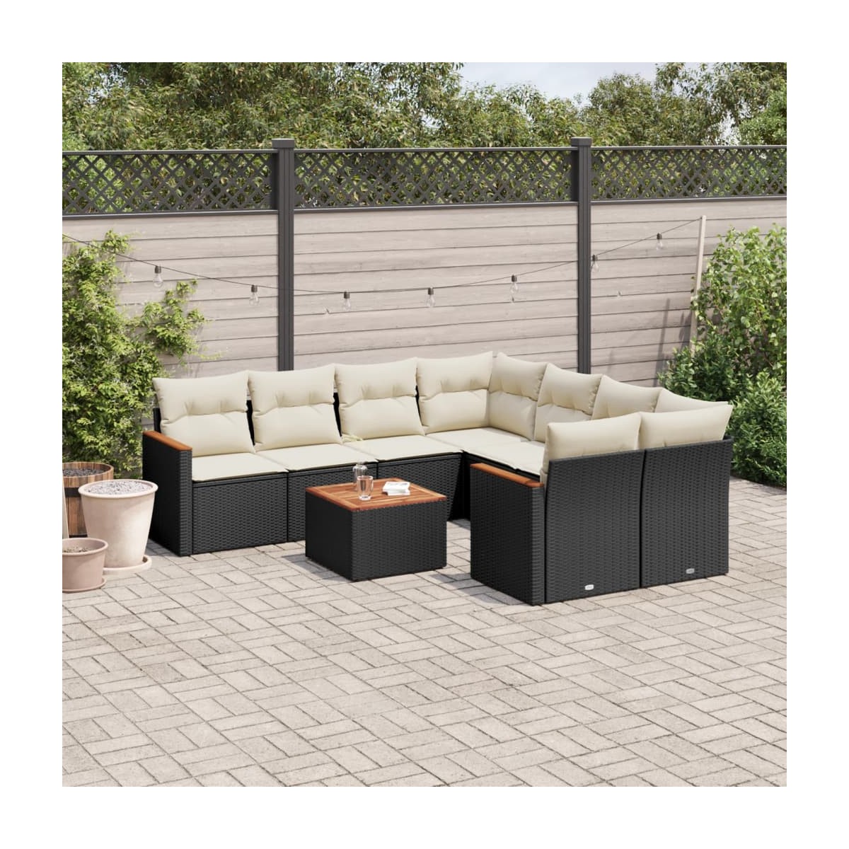 Este conjunto de sofás de jardín es el complemento perfecto para el jardín, terraza o patio, ya que proporciona un espacio confortable y acogedor para charlar con familiares y amigos o simplemente relajarte y disfrutar del aire libre. Material duradero: El ratán PE, también conocido como ratán sintético, es un material sintético resistente y de bajo mantenimiento que se parece al ratán natural. Es ligero, fácil de limpiar y se usa comúnmente para muebles de exterior debido a su durabilidad y propiedades resistentes a la intemperie.Función de almacenamiento con bolsa resistente al agua: El mueble de jardín cuenta con espacio de almacenamiento debajo del asiento, completo con una bolsa resistente al agua para guardar cojines, juguetes y otros artículos. La bolsa interior se puede sujetar de forma segura a los muebles de exterior con cierres de gancho y bucle para mayor estabilidad.Superficie estable y fácil de limpiar: Esta mesa de jardín tiene una superficie de madera de acacia que es resistente, duradero y fácil de limpiar con un paño húmedo.Funda desenfundable y lavable: Estos cojines de asiento cuentan con fundas desenfundables para facilitar el lavado y mantenimiento.Diseño modular: Este conjunto de muebles de exterior tiene un diseño modular, por lo que es completamente flexible y fácil de mover, para que puedas crear una disposición de muebles de exterior personalizada. Información útil:Para asegurarte de que tus muebles de exterior se mantengan hermosos, recomendamos protegerlos con una funda impermeable.
