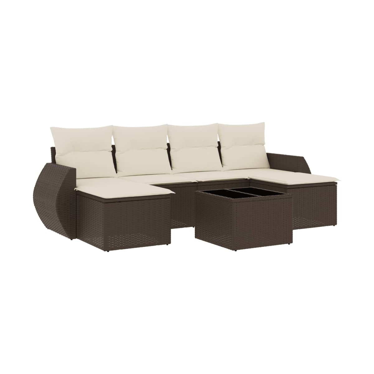 Este conjunto de sofás de jardín es el complemento perfecto para el jardín, terraza o patio, ya que proporciona un espacio confortable y acogedor para charlar con familiares y amigos o simplemente relajarte y disfrutar del aire libre. Material duradero: El ratán PE, también conocido como ratán sintético, es un material sintético resistente y de bajo mantenimiento que se parece al ratán natural. Es ligero, fácil de limpiar y se usa comúnmente para muebles de exterior debido a su durabilidad y propiedades resistentes a la intemperie.Función de almacenaje con bolsa impermeable: Cada asiento de jardín cuenta con espacio de almacenamiento debajo del asiento, completo con una bolsa resistente al agua para guardar cojines, juguetes y otros artículos. Las bolsas interiores tienen una cubierta superior y pueden fijarse firmemente a los asientos con cierres adhesivos para mayor estabilidad.Superficie de vidrio: La superficie de la mesa de exterior es de vidrio templado resistente y duradero, por lo que es fácil de limpiar con un paño húmedo y añade un toque de elegancia a tu espacio exterior.Funda desenfundable y lavable: Estos cojines de asiento cuentan con fundas desenfundables para facilitar el lavado y mantenimiento.Diseño modular: Este conjunto de muebles de exterior tiene un diseño modular, por lo que es completamente flexible y fácil de mover, para que puedas crear una disposición de muebles de exterior personalizada. Información útil:Para asegurarte de que tus muebles de exterior se mantengan hermosos, recomendamos protegerlos con una funda impermeable.
