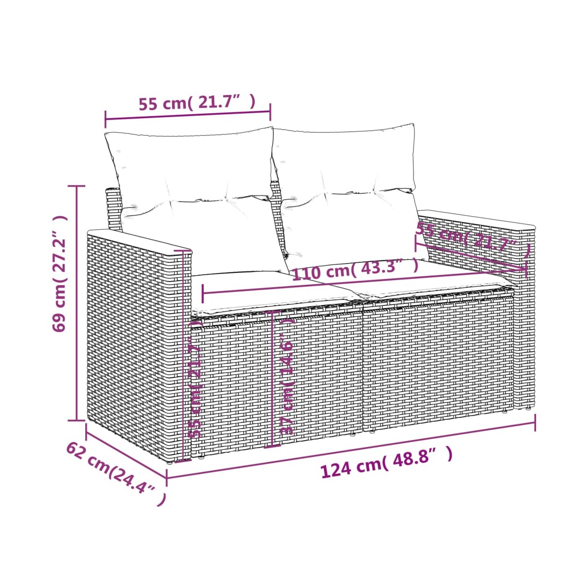 Este conjunto de sofás de jardín es el complemento perfecto para el jardín, terraza o patio, ya que proporciona un espacio confortable y acogedor para charlar con familiares y amigos o simplemente relajarte y disfrutar del aire libre. Material duradero: El ratán PE, también conocido como ratán sintético, es un material sintético resistente y de bajo mantenimiento que se parece al ratán natural. Es ligero, fácil de limpiar y se usa comúnmente para muebles de exterior debido a su durabilidad y propiedades resistentes a la intemperie.Superficie estable y fácil de limpiar: Esta mesa de jardín tiene una superficie de madera de acacia que es resistente, duradero y fácil de limpiar con un paño húmedo.Funda desenfundable y lavable: Estos cojines de asiento cuentan con fundas desenfundables para facilitar el lavado y mantenimiento.Estructura robusta y estable: La estructura de acero con recubrimiento en polvo garantiza que el mueble de jardín sea resistente y estable para usarlo a diario al aire libre.Diseño modular: Este conjunto de muebles de exterior tiene un diseño modular, por lo que es completamente flexible y fácil de mover, para que puedas crear una disposición de muebles de exterior personalizada. Información útil:Para asegurarte de que tus muebles de exterior se mantengan hermosos, recomendamos protegerlos con una funda impermeable.