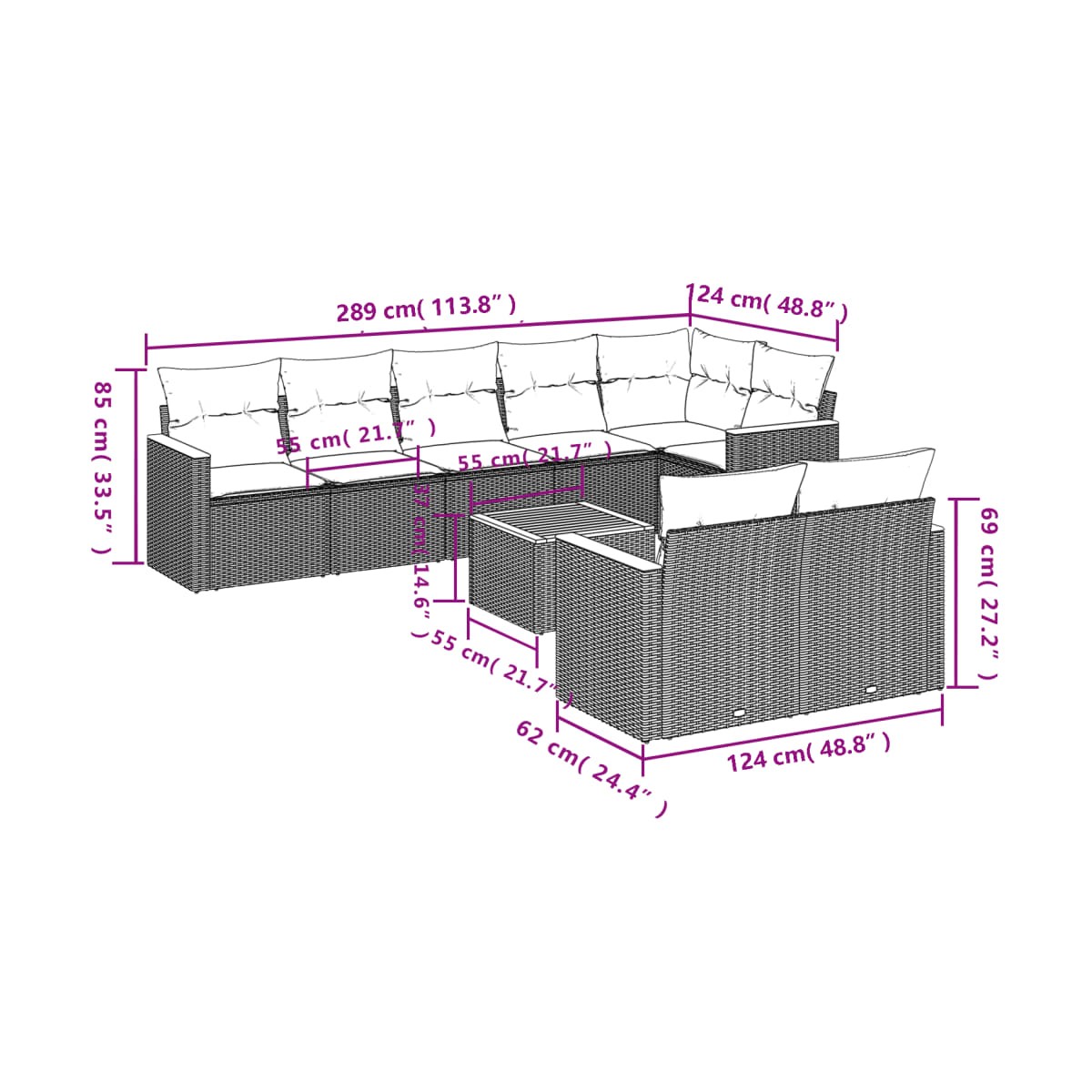 Este conjunto de sofás de jardín es el complemento perfecto para el jardín, terraza o patio, ya que proporciona un espacio confortable y acogedor para charlar con familiares y amigos o simplemente relajarte y disfrutar del aire libre. Material duradero: El ratán PE, también conocido como ratán sintético, es un material sintético resistente y de bajo mantenimiento que se parece al ratán natural. Es ligero, fácil de limpiar y se usa comúnmente para muebles de exterior debido a su durabilidad y propiedades resistentes a la intemperie.Superficie estable y fácil de limpiar: Esta mesa de jardín tiene una superficie de madera de acacia que es resistente, duradero y fácil de limpiar con un paño húmedo.Funda desenfundable y lavable: Estos cojines de asiento cuentan con fundas desenfundables para facilitar el lavado y mantenimiento.Estructura robusta y estable: La estructura de acero con recubrimiento en polvo garantiza que el mueble de jardín sea resistente y estable para usarlo a diario al aire libre.Diseño modular: Este conjunto de muebles de exterior tiene un diseño modular, por lo que es completamente flexible y fácil de mover, para que puedas crear una disposición de muebles de exterior personalizada. Información útil:Para asegurarte de que tus muebles de exterior se mantengan hermosos, recomendamos protegerlos con una funda impermeable.