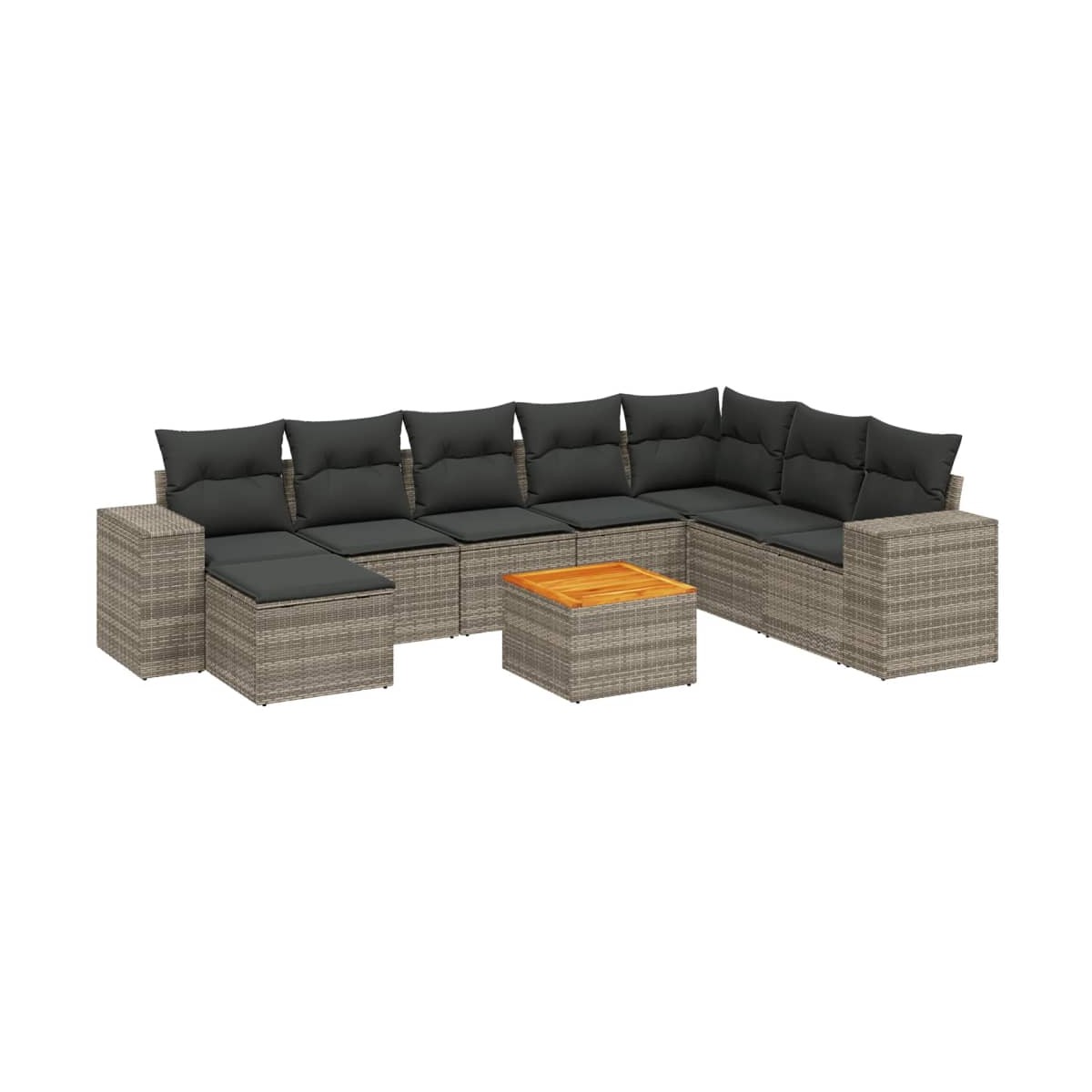 Este conjunto de sofás de jardín es el complemento perfecto para el jardín, terraza o patio, ya que proporciona un espacio confortable y acogedor para charlar con familiares y amigos o simplemente relajarte y disfrutar del aire libre. Material duradero: El ratán PE, también conocido como ratán sintético, es un material sintético resistente y de bajo mantenimiento que se parece al ratán natural. Es ligero, fácil de limpiar y se usa comúnmente para muebles de exterior debido a su durabilidad y propiedades resistentes a la intemperie.Superficie estable y fácil de limpiar: Esta mesa de jardín tiene una superficie de madera de acacia que es resistente, duradero y fácil de limpiar con un paño húmedo. Experiencia de asiento cómoda: Estos muebles de exterior, completos con cojines acolchados gruesos, ofrecen una experiencia de asiento cómoda.Funda desenfundable y lavable: Estos cojines de asiento cuentan con fundas desenfundables para facilitar el lavado y mantenimiento.Diseño modular: Este conjunto de muebles de exterior tiene un diseño modular, por lo que es completamente flexible y fácil de mover, para que puedas crear una disposición de muebles de exterior personalizada. Información útil:Para asegurarte de que tus muebles de exterior se mantengan hermosos, recomendamos protegerlos con una funda impermeable.
