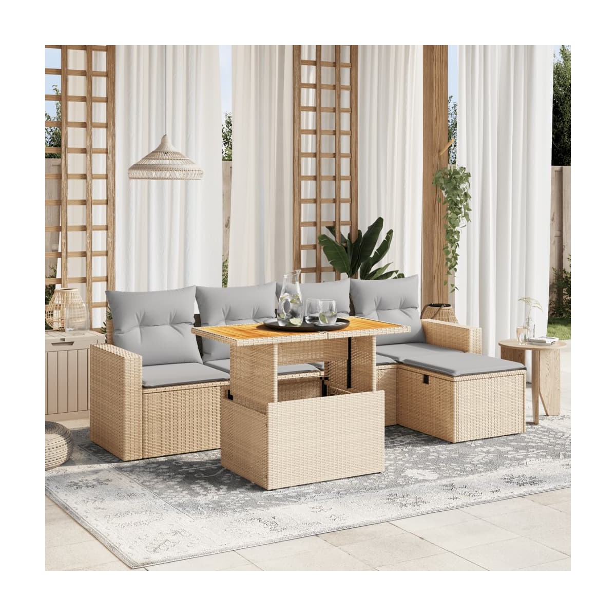 Este conjunto de sofás de jardín es el complemento perfecto para el jardín, terraza o patio, ya que proporciona un espacio confortable y acogedor para charlar con familiares y amigos o simplemente relajarte y disfrutar del aire libre. Material duradero: El ratán PE, también conocido como ratán sintético, es un material sintético resistente y de bajo mantenimiento que se parece al ratán natural. Es ligero, fácil de limpiar y se usa comúnmente para muebles de exterior debido a su durabilidad y propiedades resistentes a la intemperie.Tablero ajustable: El tablero de la mesa se puede levantar para que la mesa sea más alta, lo que transforma la mesa de jardín de una mesa de centro a una mesa de comedor. Es perfecta para invitar a invitados o comer al aire libre.Funda desenfundable y lavable: Estos cojines de asiento cuentan con fundas desenfundables para facilitar el lavado y mantenimiento.Diseño modular: Este conjunto de muebles de exterior tiene un diseño modular, por lo que es completamente flexible y fácil de mover, para que puedas crear una disposición de muebles de exterior personalizada. Información útil:Para asegurarte de que tus muebles de exterior se mantengan hermosos, recomendamos protegerlos con una funda impermeable.