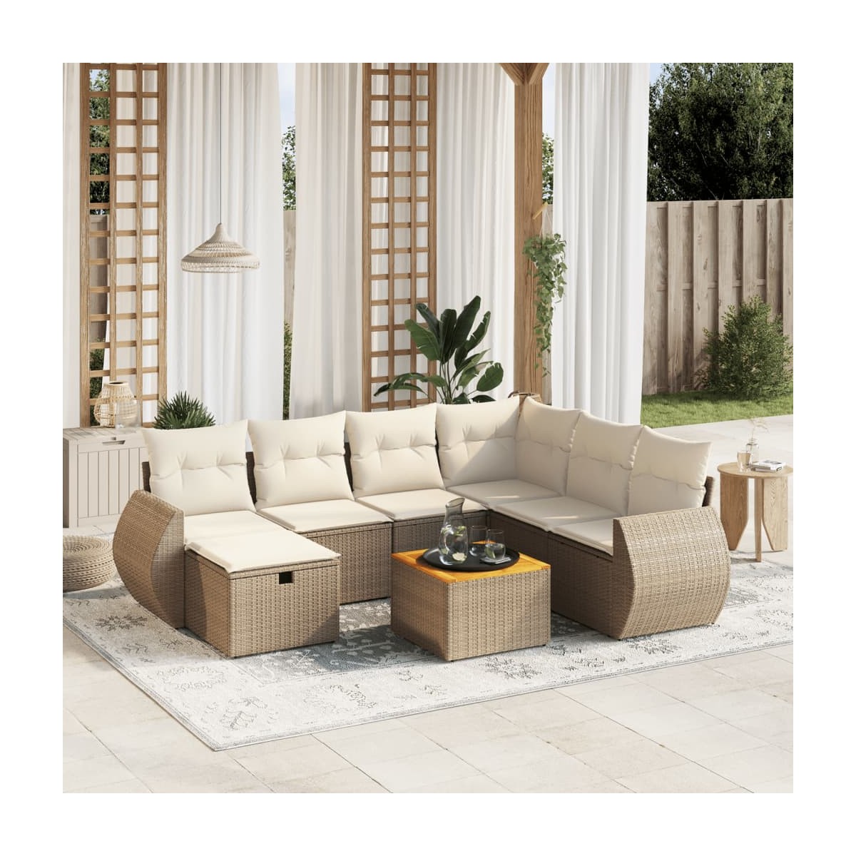 Este conjunto de sofás de jardín es el complemento perfecto para el jardín, terraza o patio, ya que proporciona un espacio confortable y acogedor para charlar con familiares y amigos o simplemente relajarte y disfrutar del aire libre. Material duradero: El ratán PE, también conocido como ratán sintético, es un material sintético resistente y de bajo mantenimiento que se parece al ratán natural. Es ligero, fácil de limpiar y se usa comúnmente para muebles de exterior debido a su durabilidad y propiedades resistentes a la intemperie.Superficie estable y fácil de limpiar: Esta mesa de jardín tiene una superficie de madera de acacia que es resistente, duradero y fácil de limpiar con un paño húmedo.Funda desenfundable y lavable: Estos cojines de asiento cuentan con fundas desenfundables para facilitar el lavado y mantenimiento.Estructura robusta y estable: La estructura de acero con recubrimiento en polvo garantiza que el mueble de jardín sea resistente y estable para usarlo a diario al aire libre.Diseño modular: Este conjunto de muebles de exterior tiene un diseño modular, por lo que es completamente flexible y fácil de mover, para que puedas crear una disposición de muebles de exterior personalizada. Información útil:Para asegurarte de que tus muebles de exterior se mantengan hermosos, recomendamos protegerlos con una funda impermeable.