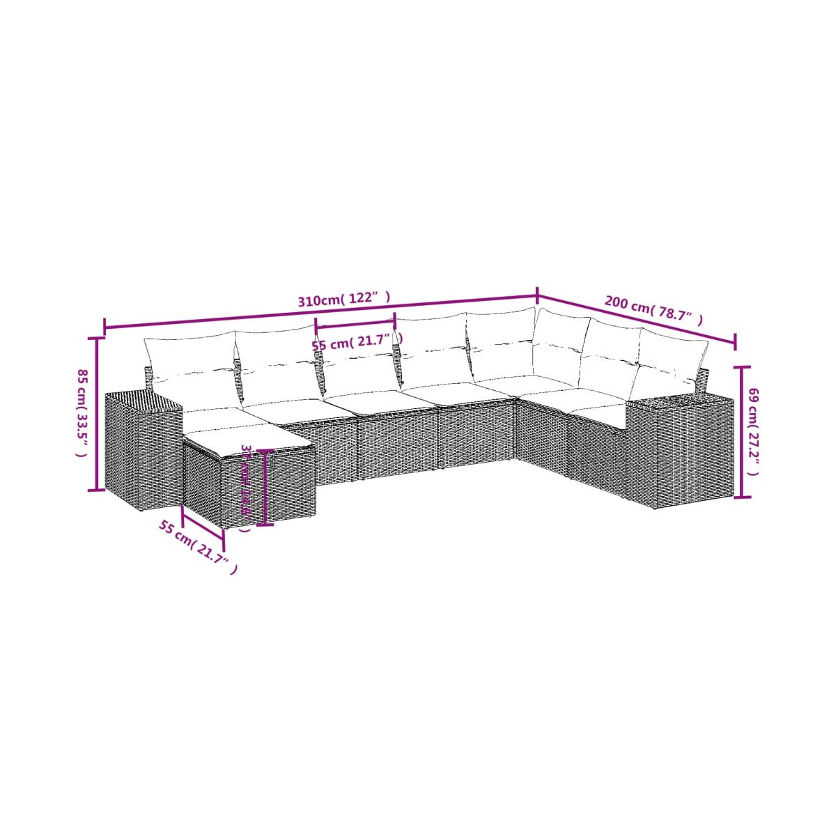 Este conjunto de sofás de jardín es el complemento perfecto para el jardín, terraza o patio, ya que proporciona un espacio confortable y acogedor para charlar con familiares y amigos o simplemente relajarte y disfrutar del aire libre. Material duradero: El ratán PE, también conocido como ratán sintético, es un material sintético resistente y de bajo mantenimiento que se parece al ratán natural. Es ligero, fácil de limpiar y se usa comúnmente para muebles de exterior debido a su durabilidad y propiedades resistentes a la intemperie.Experiencia de asiento cómoda: Estos muebles de exterior, completos con cojines acolchados gruesos, ofrecen una experiencia de asiento cómoda.Funda desenfundable y lavable: Estos cojines de asiento cuentan con fundas desenfundables para facilitar el lavado y mantenimiento.Estructura robusta y estable: La estructura de acero con recubrimiento en polvo garantiza que el mueble de jardín sea resistente y estable para usarlo a diario al aire libre.Diseño modular: Este conjunto de muebles de exterior tiene un diseño modular, por lo que es completamente flexible y fácil de mover, para que puedas crear una disposición de muebles de exterior personalizada. Información útil:Para asegurarte de que tus muebles de exterior se mantengan hermosos, recomendamos protegerlos con una funda impermeable.