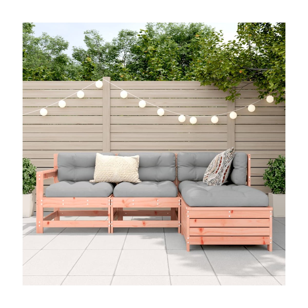Este juego de sofás de jardín de madera, con un diseño de listones, será un gran complemento para el jardín, el patio o la terraza, para poder disfrutar de un rato agradable con la familia o los amigos. Material resistente y duradero: La madera de abeto Douglas es conocida por su resistencia y durabilidad. Su intenso color marrón rojizo y su veteado único transmiten un ambiente cálido y natural. Con una buena estabilidad y resistencia a la intemperie, es ideal para fabricar muebles de interior y exterior. Buena ventilación y prevención de encharcamientos: El diseño de rejilla favorece un flujo de aire óptimo y evita eficazmente la acumulación de agua, lo que garantiza un asiento seco y cómodo. Uso versátil: El taburete de jardín no solo se puede usar para sentarse o relajar los pies, sino que también se puede usar como mesa de centro para guardar bebidas, comida y otros adornos. Diseño modular: Este conjunto de muebles de exterior tiene un diseño modular, por lo que es completamente flexible y fácil de mover, para que puedas crear una disposición de muebles de exterior personalizada. Información útil:Para asegurarte de que tus muebles de exterior se mantengan hermosos, recomendamos protegerlos con una funda impermeable.