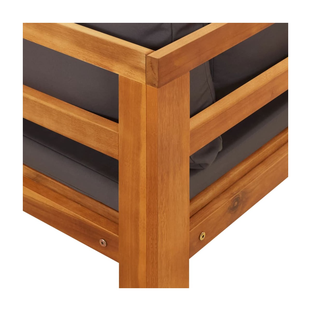 Este juego de salón de madera para jardín es una excelente opción para relajarse y disfrutar del buen tiempo, echar una siesta o charlar con tu familia o amigos. Con un diseño atemporal, el juego de salón agregará un toque de encanto rústico a tu patio, terraza o jardín. Hecho de madera maciza de acacia, el conjunto de muebles de exterior es resistente a la intemperie y muy duradero. Combinado con los cojines acolchados gruesos, este juego de salón para patio brinda la máxima comodidad. El reposabrazos de la tumbona se pueden montar tanto en el lado izquierdo como en el derecho según tus necesidades. ¡También puedes combinar el juego de sofás con otros segmentos modulares para crear tus propias configuraciones personales de juegos de jardín! Nota: Para prolongar la vida útil de los muebles de exterior, te recomendamos que los limpies con regularidad y no los dejes al aire libre sin protección innecesariamente.Limpieza: Usa una solución de jabón suave.Almacenamiento: Si es posible, guarda el producto en un lugar fresco y seco en el interior. Si el producto se almacena al aire libre, protégelo con una funda impermeable. Limpia y seca el exceso de agua o nieve de las superficies planas después de una lluvia o nevada. Permite la ventilación para evitar daños relacionados con la humedad.