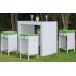 Conjunto de bar fabricado con estructura de aluminio y trenzado de fibra sintética de 8x1.3mm en color blanco. El conjunto incluye una mesa tipo barra de bar con cristal incluido, 4 taburetes y unos cojines muy confortables con tapicería en Dralón (tejido acrílico lavable, transpirable, fresco y resistente al exterior.