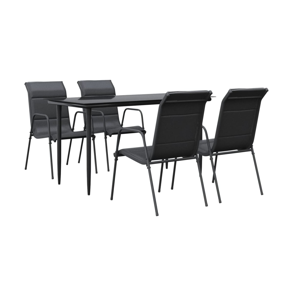 ¡Disfruta de una buena comida o cena en el espacio al aire libre de tu casa con este juego de comedor para jardín! Con un diseño elegante, ¡se convertirá en el centro de atención del jardín o patio! Estructura estable: La mesa y las sillas con reposabrazos son de acero con recubrimiento en polvo, por lo que son resistentes y estables.Material duradero: Gracias a la fuerte tela de textilene con acolchado, estas sillas de jardín son muy cómodas, resistentes a las inclemencias del tiempo y fáciles de limpiar.Superficie robusta: La superficie es de vidrio templado, por lo que es fácil de limpiar. Asimismo, es perfecta para colocar aperitivos, bebidas, jarrones, fruteros y artículos decorativos.Cómodo asiento: Diseñada con reposabrazos y un respaldo curvado, la silla de jardín tiene una forma más ergonómica para ofrecer la máxima comodidad Información útil:Para asegurarte de que tus muebles de exterior se mantengan hermosos, recomendamos protegerlos con una funda impermeable.