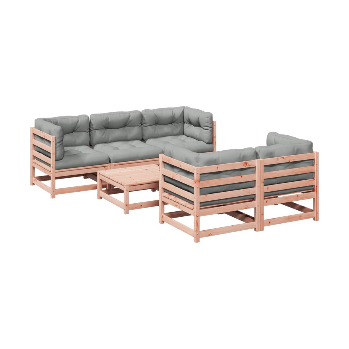 Este conjunto de sofás de jardín es el complemento perfecto para el jardín, terraza o patio, ya que proporciona un espacio confortable y acogedor para charlar con familiares y amigos o simplemente relajarte y disfrutar del aire libre. Material resistente y duradero: La madera de abeto Douglas es conocida por su resistencia y durabilidad. Su intenso color marrón rojizo y su veteado único transmiten un ambiente cálido y natural. Con una buena estabilidad y resistencia a la intemperie, es ideal para fabricar muebles de interior y exterior. Experiencia de asiento cómoda: Estos muebles de exterior, completos con cojines acolchados gruesos, ofrecen una experiencia de asiento cómoda. Buena ventilación y prevención de encharcamientos: El diseño de rejilla favorece un flujo de aire óptimo y evita eficazmente la acumulación de agua, lo que garantiza un asiento seco y cómodo. Diseño modular: Este conjunto de muebles de exterior tiene un diseño modular, por lo que es completamente flexible y fácil de mover, para que puedas crear una disposición de muebles de exterior personalizada. Información útil:Para asegurarte de que tus muebles de exterior se mantengan hermosos, recomendamos protegerlos con una funda impermeable.