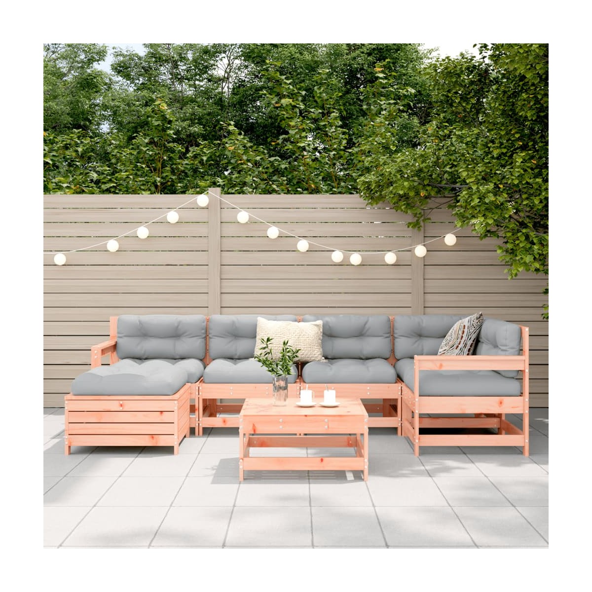Este juego de sofás de jardín de madera, con un diseño de listones, será un gran complemento para el jardín, el patio o la terraza, para poder disfrutar de un rato agradable con la familia o los amigos. Material resistente y duradero: La madera de abeto Douglas es conocida por su resistencia y durabilidad. Su intenso color marrón rojizo y su veteado único transmiten un ambiente cálido y natural. Con una buena estabilidad y resistencia a la intemperie, es ideal para fabricar muebles de interior y exterior. Buena ventilación y prevención de encharcamientos: El diseño de rejilla favorece un flujo de aire óptimo y evita eficazmente la acumulación de agua, lo que garantiza un asiento seco y cómodo. Uso versátil: El taburete de jardín no solo se puede usar para sentarse o relajar los pies, sino que también se puede usar como mesa de centro para guardar bebidas, comida y otros adornos. Diseño modular: Este conjunto de muebles de exterior tiene un diseño modular, por lo que es completamente flexible y fácil de mover, para que puedas crear una disposición de muebles de exterior personalizada. Información útil:Para asegurarte de que tus muebles de exterior se mantengan hermosos, recomendamos protegerlos con una funda impermeable.
