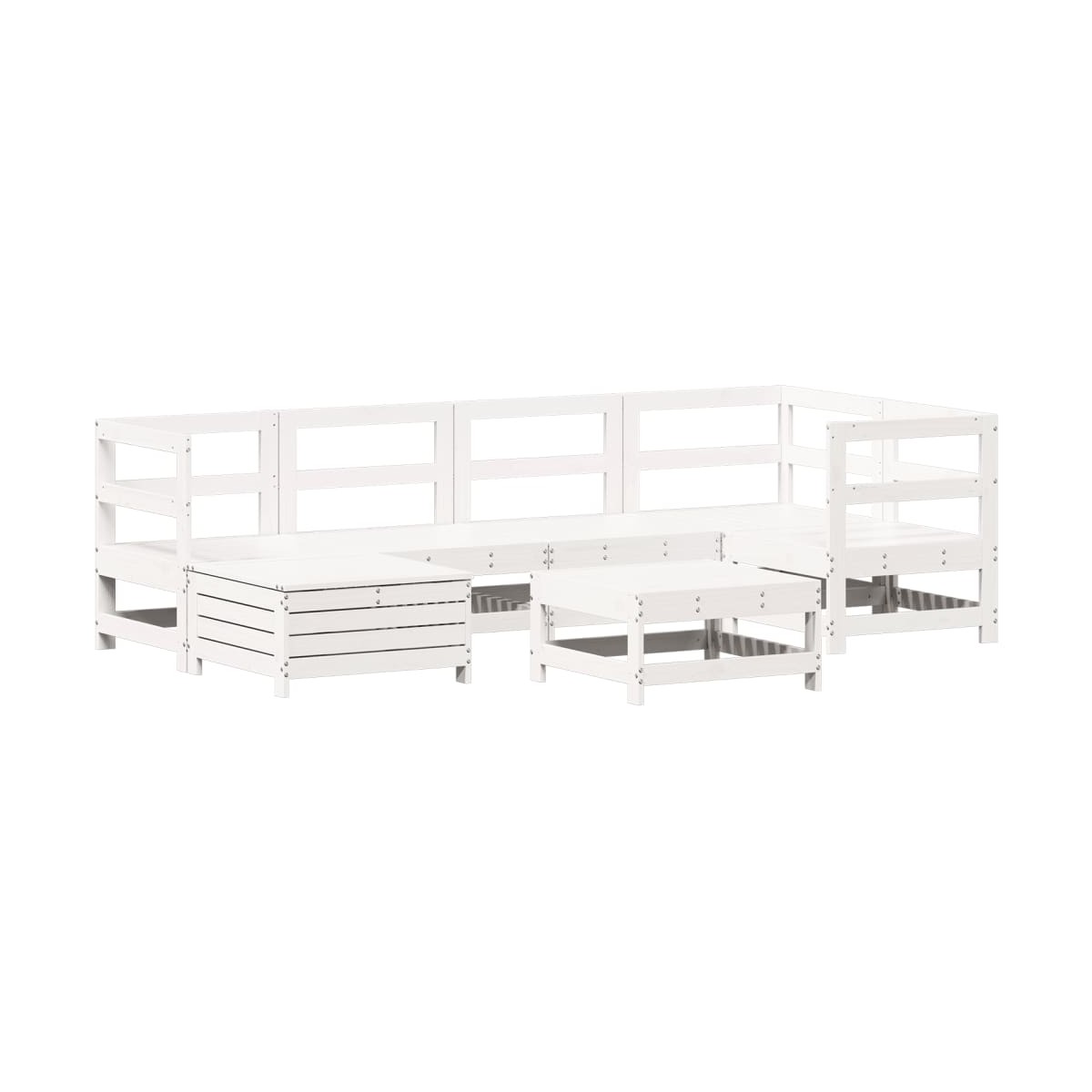 Este juego de sofás de jardín de madera, con un diseño de listones, será un gran complemento para el jardín, el patio o la terraza, para poder disfrutar de un rato agradable con la familia o los amigos. Material resistente y duradero: La madera maciza de pino es conocida por su resistencia y durabilidad. Sus vetas rectas y nudos característicos contribuyen a su encanto rústico. Buena ventilación y prevención de encharcamientos: El diseño de rejilla favorece un flujo de aire óptimo y evita eficazmente la acumulación de agua, lo que garantiza un asiento seco y cómodo. Uso versátil: El taburete de jardín no solo se puede usar para sentarse o relajar los pies, sino que también se puede usar como mesa de centro para guardar bebidas, comida y otros adornos. Diseño modular: Este conjunto de muebles de exterior tiene un diseño modular, por lo que es completamente flexible y fácil de mover, para que puedas crear una disposición de muebles de exterior personalizada. Información útil:Para asegurarte de que tus muebles de exterior se mantengan hermosos, recomendamos protegerlos con una funda impermeable.
