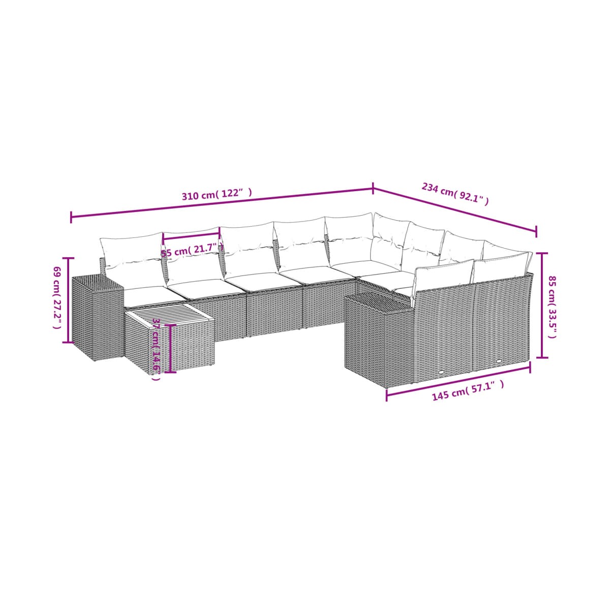 Este conjunto de sofás de jardín es el complemento perfecto para el jardín, terraza o patio, ya que proporciona un espacio confortable y acogedor para charlar con familiares y amigos o simplemente relajarte y disfrutar del aire libre. Material duradero: El ratán PE, también conocido como ratán sintético, es un material sintético resistente y de bajo mantenimiento que se parece al ratán natural. Es ligero, fácil de limpiar y se usa comúnmente para muebles de exterior debido a su durabilidad y propiedades resistentes a la intemperie.Superficie estable y fácil de limpiar: Esta mesa de jardín tiene una superficie de madera de acacia que es resistente, duradero y fácil de limpiar con un paño húmedo. Función de almacenaje con bolsa impermeable: Cada asiento de jardín cuenta con espacio de almacenamiento debajo del asiento, completo con una bolsa resistente al agua para guardar cojines, juguetes y otros artículos. Las bolsas interiores tienen una cubierta superior y pueden fijarse firmemente a los asientos con cierres adhesivos para mayor estabilidad.Experiencia de asiento cómoda: Estos muebles de exterior, completos con cojines acolchados gruesos, ofrecen una experiencia de asiento cómoda.Diseño modular: Este conjunto de muebles de exterior tiene un diseño modular, por lo que es completamente flexible y fácil de mover, para que puedas crear una disposición de muebles de exterior personalizada. Información útil:Para asegurarte de que tus muebles de exterior se mantengan hermosos, recomendamos protegerlos con una funda impermeable.