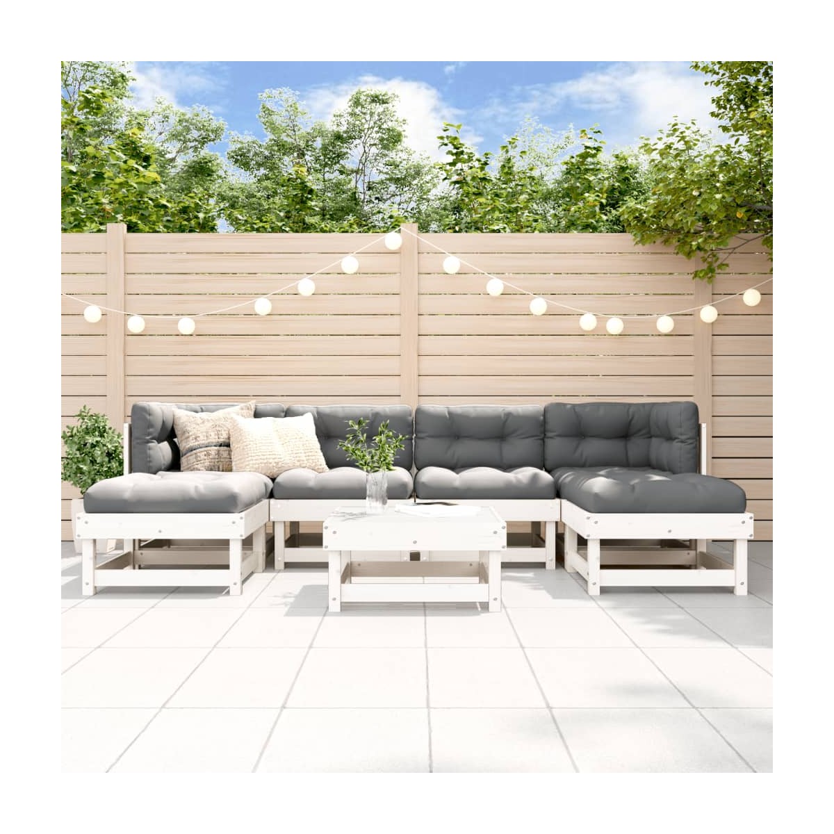 Este juego de muebles de jardín de madera, que destaca por su diseño de listones y sus blandos cojines , será un gran complemento para el jardín, el patio o la terraza, para poder disfrutar de un rato agradable con la familia o los amigos. Madera de pino maciza: La madera de pino maciza es un bonito material natural. La madera de pino tiene vetas rectas, y los nudos dan al material su distintivo aspecto rústico.Estructura robusta y estable: La estructura de madera hace que el conjunto de muebles sea robusto y estable para usar a diario al aire libre.Cómodo asiento: El respaldo y el reposabrazos aportan un plus de comodidad al juego de muebles de jardín. Además, los cojines gruesos y acolchados proporcionan comodidad al asiento.Diseño modular: El juego de sofás es flexible y fácil de mover. Puedes combinarlo con otros segmentos modulares de la tienda web para crear tus propias configuraciones de juego de muebles de jardín. Información útil:Para asegurarte de que tus muebles de exterior se mantengan hermosos, recomendamos protegerlos con una funda impermeable.
