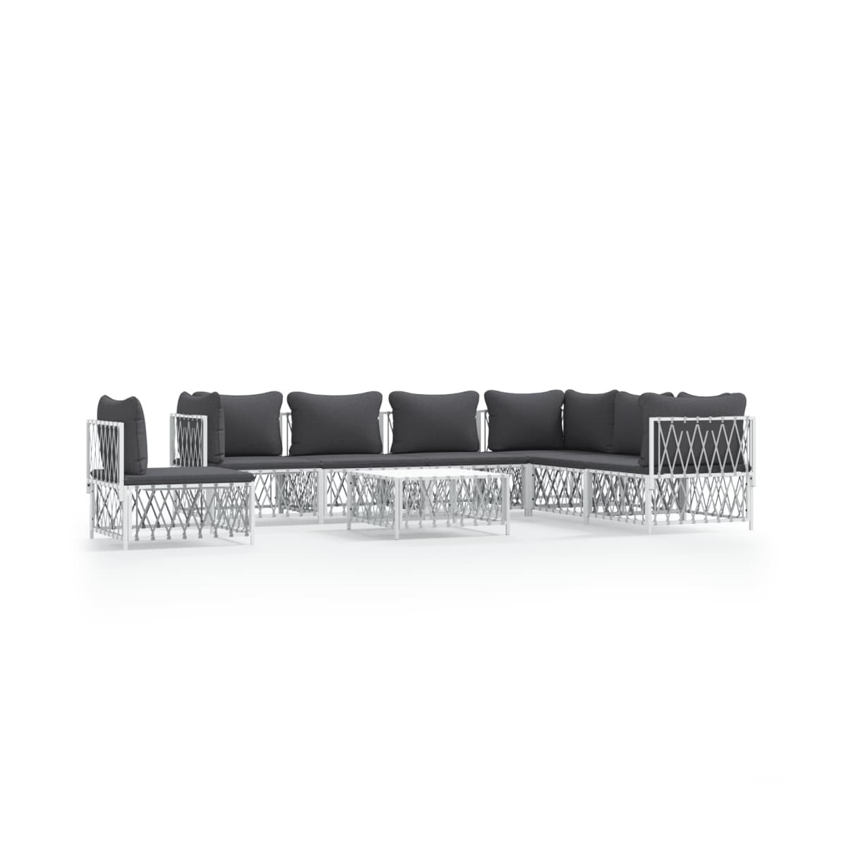 ¡Disfruta de una taza de café o té en el espacio al aire libre de la casa con este cómodo juego de muebles de jardín! Material duradero: La tela tejida es cualquier textil formado por tejido. Se trata de un tipo de tela muy útil que usamos muy a menudo en nuestro día a día debido a su durabilidad y versatilidad.Estructura robusta: La estructura de acero con recubrimiento en polvo hace que el juego de sofás sea resistente y estable para usar a diario al aire libre.Cómodo asiento: El respaldo aporta un plus de comodidad al sofá de exterior. Además, los cojines gruesos y acolchados proporcionan comodidad al asiento.Diseño modular: El juego de sofás es flexible y fácil de mover, por lo que puedes combinarlo con otros segmentos modulares de la tienda web para crear tus propias configuraciones personales de juegos de muebles para jardín. Nota:Para asegurarte de que tus muebles de exterior se mantengan hermosos, recomendamos protegerlos con una funda impermeable.