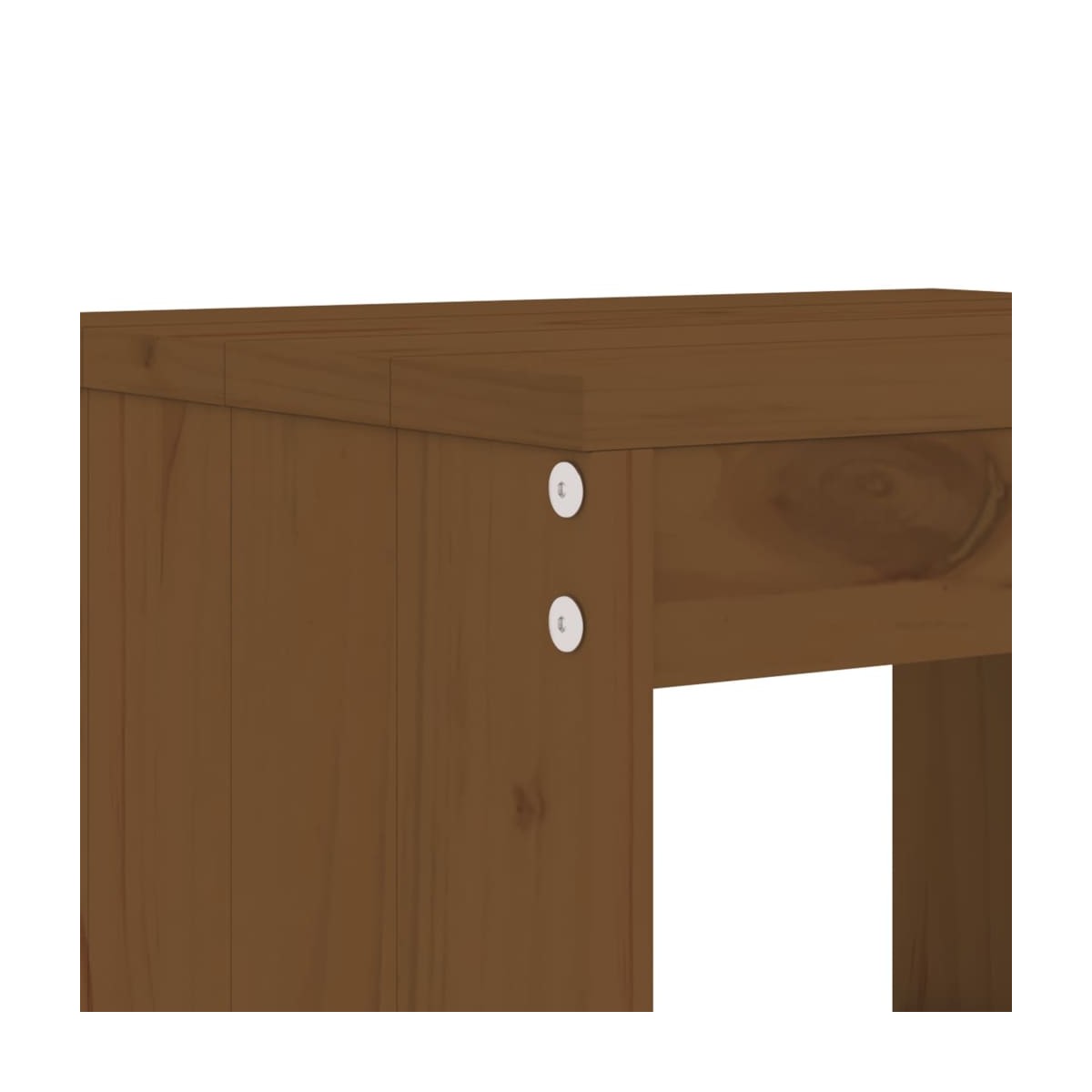 ¡Toma un sorbo de tu bebida favorita o disfruta de una buena comida con la familia y los amigos alrededor de este juego de mesa y taburetes altos de madera! Madera maciza de pino: Este juego de mesa y taburetes altos está hecho de madera maciza de pino. La madera maciza de pino es un bonito material natural. La madera de pino tiene vetas rectas, y los nudos dan al material su distintivo aspecto rústico.Superficie resistente: La mesa alta de estos muebles de bar tiene una superficie resistente, perfecta para colocar bebidas, comida y artículos decorativos.Diseño práctico: Estos taburetes altos de madera no tienen respaldo, para que te puedas sentar cómodamente por cualquier lado de los taburetes y para que puedas guardarlos debajo de la encimera cuando no se usen.Amplios usos: Con un diseño minimalista, el juego de muebles altos para jardín encaja en cualquier rincón del jardín, patio, balcón, la terraza, etc. Información útil:Para asegurarte de que tus muebles de exterior se mantengan hermosos, recomendamos protegerlos con una funda impermeable.
