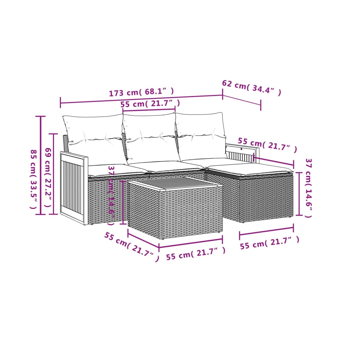 Este conjunto de sofás de jardín es el complemento perfecto para el jardín, terraza o patio, ya que proporciona un espacio confortable y acogedor para charlar con familiares y amigos o simplemente relajarte y disfrutar del aire libre. Material duradero: El ratán PE, también conocido como ratán sintético, es un material sintético resistente y de bajo mantenimiento que se parece al ratán natural. Es ligero, fácil de limpiar y se usa comúnmente para muebles de exterior debido a su durabilidad y propiedades resistentes a la intemperie.Función de almacenamiento con bolsa resistente al agua: El mueble de jardín cuenta con espacio de almacenamiento debajo del asiento, completo con una bolsa resistente al agua para guardar cojines, juguetes y otros artículos. La bolsa interior se puede sujetar de forma segura a los muebles de exterior con cierres de gancho y bucle para mayor estabilidad.Superficie estable y fácil de limpiar: Esta mesa de jardín tiene una superficie de madera de acacia que es resistente, duradero y fácil de limpiar con un paño húmedo.Funda desenfundable y lavable: Estos cojines de asiento cuentan con fundas desenfundables para facilitar el lavado y mantenimiento.Diseño modular: Este conjunto de muebles de exterior tiene un diseño modular, por lo que es completamente flexible y fácil de mover, para que puedas crear una disposición de muebles de exterior personalizada. Información útil:Para asegurarte de que tus muebles de exterior se mantengan hermosos, recomendamos protegerlos con una funda impermeable.