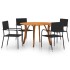 ¡Crea una estética atractiva y cohesionada en el espacio al aire libre de tu casa con este juego de comedor para jardín! Esta mesa de exterior está hecha de madera maciza de acacia, lo que la hace robusta y estable. La superficie con acabado de aceite también facilita la limpieza de la mesa con un paño húmedo. Además, las patas curvas contribuyen a su elegante diseño. Con una estructura de acero cubierto con ratán PE resistente a la intemperie, estas sillas de comedor son robustas y fáciles de limpiar. Las sillas de jardín son ligeras y se pueden apilar para ahorrar espacio cuando no se usen. Nota: Para prolongar la vida útil de los muebles de exterior, te recomendamos que los limpies con regularidad y no los dejes al aire libre sin protección innecesariamente.Limpieza: Usar una solución de jabón suaveAlmacenamiento: Si es posible, guarda el producto en un lugar fresco y seco en el interior. Si el producto se almacena al aire libre, protégelo con una funda impermeable. Limpia y seca el exceso de agua o nieve de las superficies planas después de una lluvia o nevada. Permite la ventilación para evitar daños relacionados con la humedad.