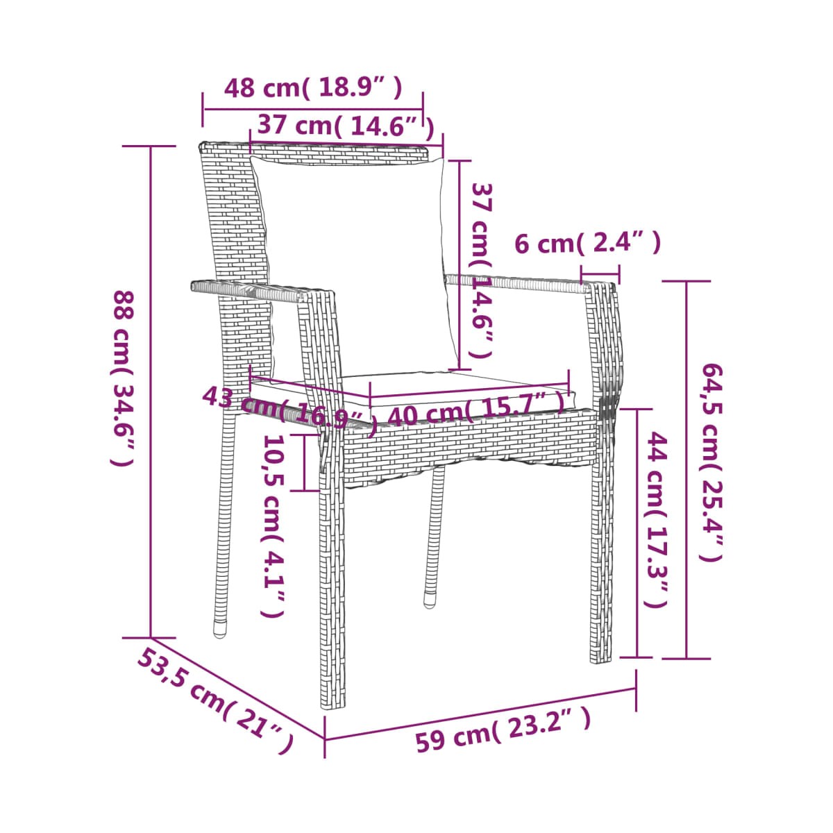 Este moderno juego de comedor de jardín, con un diseño elegante y contemporáneo, es una excelente opción para comer o relajarse en el jardín. Material resistente a la intemperie: El ratán PE, también conocido como ratán sintético, es resistente a la intemperie y fácil de limpiar. La parte exterior se mantiene hermosa durante mucho tiempo. Ofrece una gran calidad, comodidad y aspecto estético.Estructura robusta: Las estructuras de acero con recubrimiento en polvo hacen que el juego de comedor para exterior sea resistente y estable para usar a diario al aire libre.Práctica superficie: La superficie lisa de la mesa de jardín está hecha de vidrio templado, fácil de limpiar con un paño húmedo. Además, la robusta superficie de la mesa es perfecta para colocar comidas, bebidas y elementos decorativos.Diseño modular: El juego de comedor para patio es flexible y fácil de mover, por lo que puedes combinarlo con otros segmentos modulares de la web para crear tus propias configuraciones personales de muebles de comedor para jardín.Cómodo asiento: El respaldo añade un plus de comodidad al asiento de la silla de jardín. Además, los cojines gruesos y acolchados proporcionan comodidad al asiento. Información útil:Para facilitar al máximo el montaje, cada producto se entrega con un manual. Nota:Para asegurarte de que tus muebles de exterior se mantengan hermosos, recomendamos protegerlos con una funda impermeable.