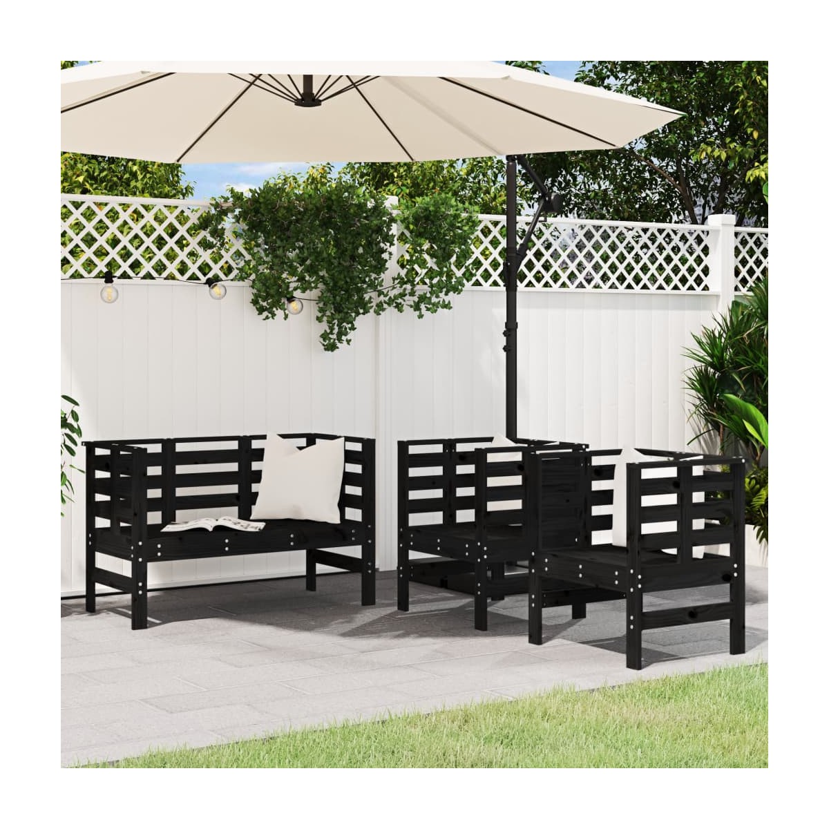 Este conjunto de muebles de jardín de madera tiene un diseño elegante y es una excelente opción para relajarse y disfrutar en el jardín o patio. Madera de pino maciza: El juego de salón de exterior está hecho de madera de pino maciza para mayor robustez y estabilidad. La madera maciza de pino es un bonito material natural. La madera de pino tiene vetas rectas, y los nudos dan al material su distintivo aspecto rústico.Cómoda experiencia de asiento: Con reposabrazos y respaldo, el juego de salón de patio brinda la máxima comodidad.Diseño de listones: El diseño de listones del juego de salón de madera evita la acumulación de agua, manteniendo el asiento seco y evitando que se pudra innecesariamente.Diversos usos: L os asientos de jardín son perfectos para cualquier porche delantero, patio, césped, jardín, etc Información útil:Para asegurarte de que tus muebles de exterior se mantengan hermosos, recomendamos protegerlos con una funda impermeable.