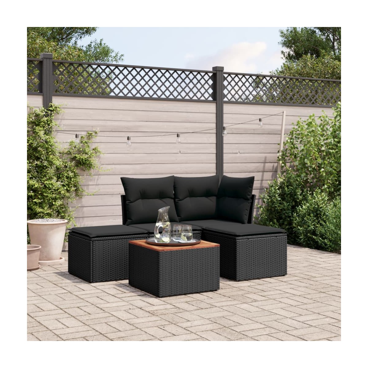 Este conjunto de sofás de jardín es el complemento perfecto para el jardín, terraza o patio, ya que proporciona un espacio confortable y acogedor para charlar con familiares y amigos o simplemente relajarte y disfrutar del aire libre. Material duradero: El ratán de PE, también conocido como ratán sintético, es un material sintético resistente y de bajo mantenimiento que se parece al ratán natural. Es ligero, fácil de limpiar y se usa comúnmente para muebles de exterior debido a su durabilidad y propiedades resistentes a la intemperie.Experiencia de asiento cómoda: Estos muebles de exterior, completos con cojines acolchados gruesos, ofrecen una experiencia de asiento cómoda.Superficie estable y fácil de limpiar: Esta mesa de jardín tiene una superficie de madera de acacia que es resistente, duradero y fácil de limpiar con un paño húmedo.Funda desenfundable y lavable: Estos cojines de asiento cuentan con fundas desenfundables para facilitar el lavado y mantenimiento.Diseño modular: Este conjunto de muebles de exterior tiene un diseño modular, por lo que es completamente flexible y fácil de mover, para que puedas crear una disposición de muebles de exterior personalizada. Información útil:Para asegurarte de que tus muebles de exterior se mantengan hermosos, recomendamos protegerlos con una funda impermeable.