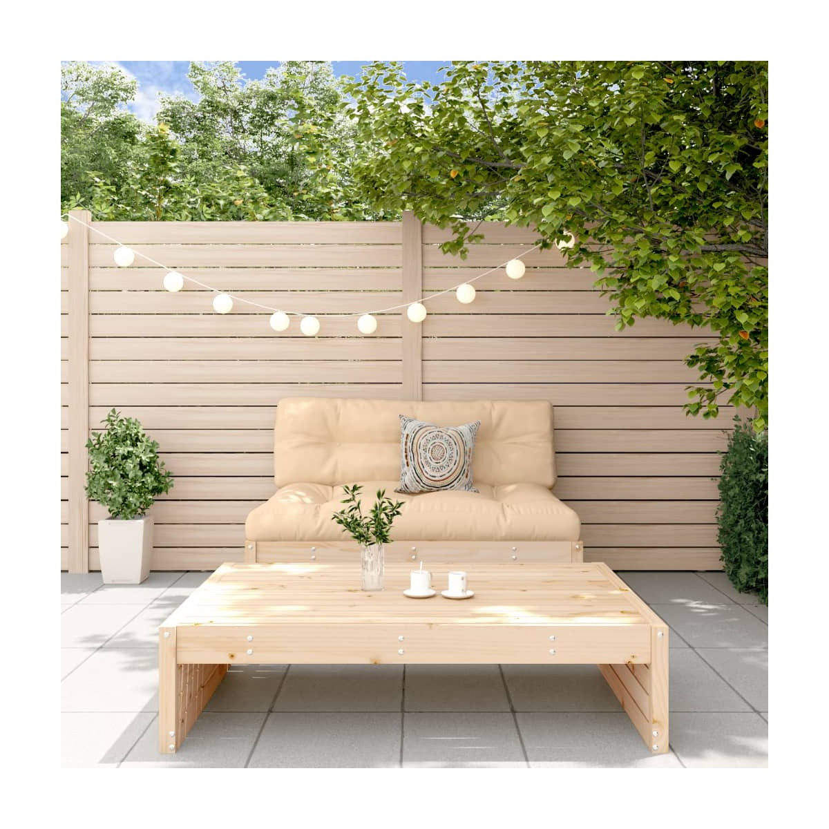 Este juego de sofás de jardín de madera, que destaca por su diseño de listones, será un gran complemento para el jardín, el patio o la terraza, para poder disfrutar de un rato agradable con la familia o los amigos. Madera de pino maciza: La madera de pino maciza es un bonito material natural. La madera de pino tiene vetas rectas, y los nudos dan al material su distintivo aspecto rústico.Estructura robusta y estable: La estructura de madera hace que el conjunto de muebles sea robusto y estable para usar a diario al aire libre.Cómodo asiento: El respaldo aporta un plus de comodidad al sofá de exterior.Diseño modular: El juego de sofás es flexible y fácil de mover. Puedes combinarlo con otros segmentos modulares de la tienda web para crear tus propias configuraciones de juego de muebles de jardín. Información útil:Los cojines no están incluidos en la entrega.Para asegurarte de que tus muebles de exterior se mantengan hermosos, recomendamos protegerlos con una funda impermeable.