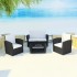 ¡Nuestro elegante set de comedor de ratán se convertirá en el centro de atención de tu jardín o patio! Este set de comedor, con un diseño elegante, serán una gran opción para todas las comidas al aire libre o relajarse en el jardín. La estructura de acero con recubrimiento en polvo hacen que la mesa, los sillones y el sofá sean fuertes y resistentes, y gracias a su construcción ligera, todos los artículos son fáciles de mover. Hecho de ratán PE impermeable y resistente a la intemperie, el conjunto de sofás es fácil de limpiar. La superficie de cristal también es fácil de limpiar con un paño húmedo. Los cojines de asiento gruesos, suaves y rellenos de espuma son muy cómodos y están hechos de poliéster hidrófugo. Las fundas extraíbles y lavables están equipadas con cremalleras. La entrega incluye 1 mesa de centro, 2 sillones, 1 sofá de dos plazas y 6 cojines. Nota: Rcomendamos cubrir el conjunto en condiciones de lluvia, nieve y heladas.