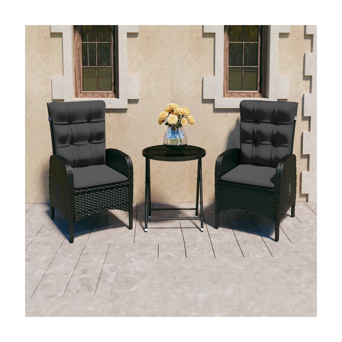 ¡Este elegante juego de bistró para jardín está destinado a ser el foco de atención de tu jardín o patio! ¡Es una excelente opción para relajarse en los espacios al aire libre! La estructura de acero con recubrimiento en polvo hace que la mesa y las sillas sean fuertes y robustas. Gracias a las construcciones ligeras, todos los elementos son fáciles de mover. El ratán PE resistente a la intemperie y la superficie de vidrio son fáciles de limpiar con un paño húmedo. Los sillones están diseñados con respaldos y reposabrazos curvos para ofrecer la máxima comodidad. Se incluyen cojines para un mayor soporte y la funda con cremallera es extraíble para facilitar el lavado. Cuando no está en uso, la mesa se puede plegar para un fácil almacenamiento.