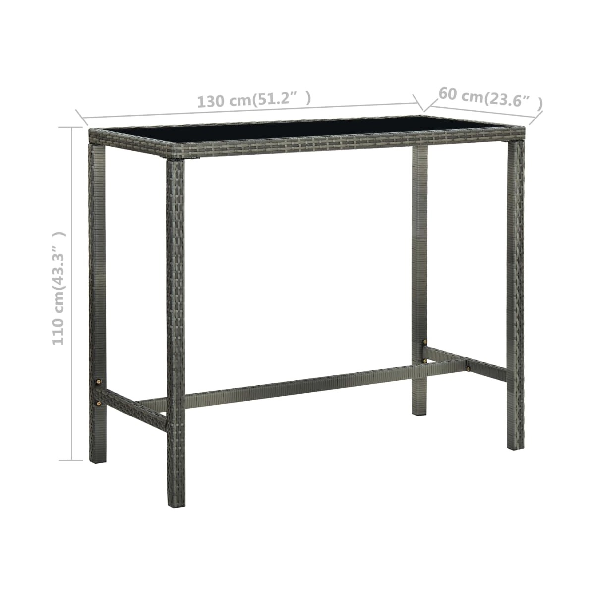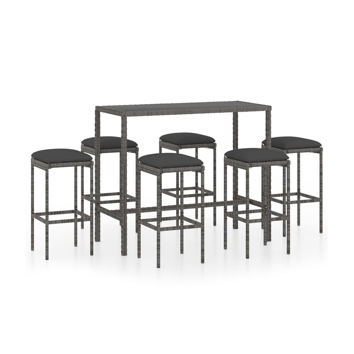 Este elegante conjunto de bar en el jardín proporciona un lugar cómodo y tranquilo para que puedas disfrutar del tiempo con tu familia y amigos. Esta mesa alta cuenta con una estructura de acero con recubrimiento en polvo cubierta con ratán PE resistente al agua, lo que garantiza años de uso en exteriores. Además, el tablero de cristal templado facilita la limpieza. Los taburetes tienen una estructura de acero resistente y están hechos de ratán PE resistente a la intemperie, lo que garantiza estabilidad y son fáciles de mover. El cojín del asiento y el reposapiés incorporado también añaden comodidad adicional al taburete. Nota: Para prolongar la vida de tus muebles de exterior, te recomendamos que los protejas con una funda impermeable.