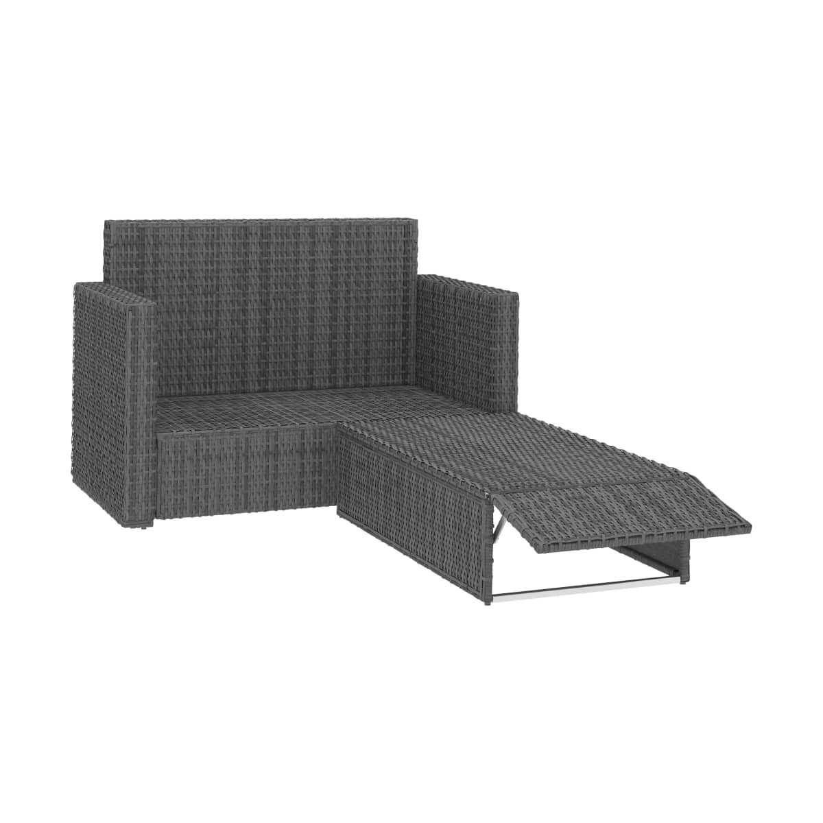 Este conjunto de sofá y taburete de jardín de ratán será un gran aporte para tu jardín, patio o terraza. Agregará un toque de elegancia moderna a tu patio, balcón o jardín con su diseño sobrio pero elegante. Hecho de ratán PE resistente a la intemperie, el conjunto es fácil de limpiar, resistente y adecuado para uso diario al aire libre. La estructura de acero con recubrimiento en polvo hace al conjunto robusto y duradero. Gracias a la construcción ligera, es fácil moverlo. El taburete tiene reposapiés desplegables y se pueden usar combinado con el sofá en varias configuraciones, para que siempre pueda encontrar el asiento o la posición tumbada más cómoda. Este juego se entrega con cojines muy cómodos y acolchados. Las fundas de poliéster que apenas necesitan mantenimiento también se pueden quitar y lavar. Todos los artículos son fáciles de montar. La entrega incluye 1 sofá biplaza, 1 reposapiés y 5 cojines. Nota: Se recomienda cubrir el set en caso de lluvia, nieve y heladas.