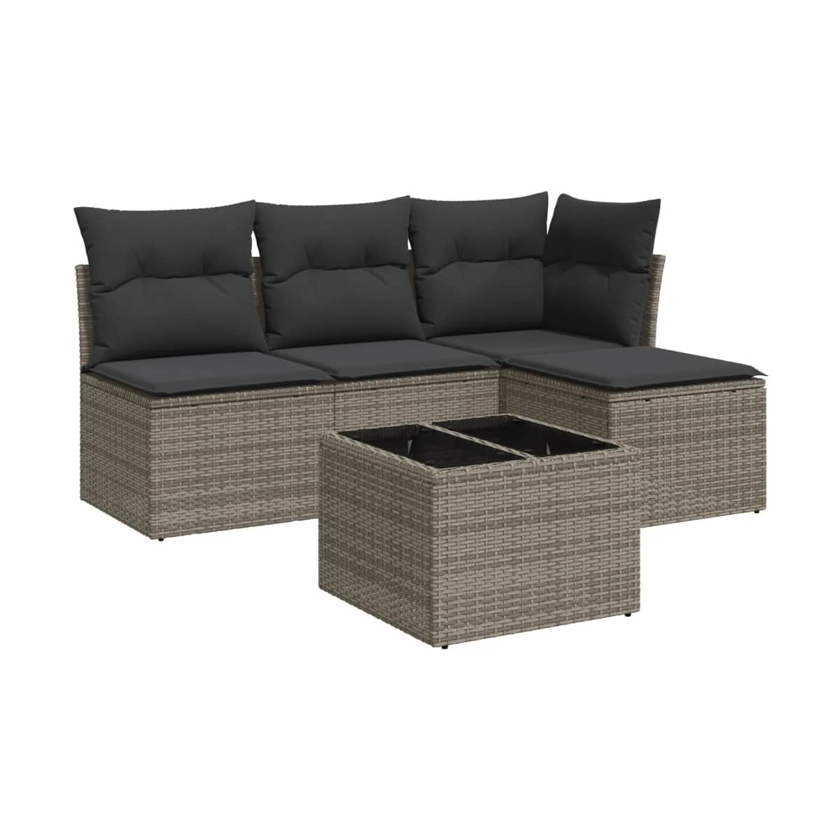 Este conjunto de sofás de jardín es el complemento perfecto para el jardín, terraza o patio, ya que proporciona un espacio confortable y acogedor para charlar con familiares y amigos o simplemente relajarte y disfrutar del aire libre. Material duradero: El ratán de PE, también conocido como ratán sintético, es un material sintético resistente y de bajo mantenimiento que se parece al ratán natural. Es ligero, fácil de limpiar y se usa comúnmente para muebles de exterior debido a su durabilidad y propiedades resistentes a la intemperie.Experiencia de asiento cómoda: Este juego de muebles de exterior, completo con cojines acolchados gruesos, ofrece una experiencia de asiento cómoda.Funda desenfundable y lavable: Estos cojines de asiento cuentan con fundas desenfundables para facilitar el lavado y mantenimiento.Superficie de vidrio: La superficie de la mesa de exterior es de vidrio templado resistente y duradero, por lo que es fácil de limpiar con un paño húmedo y añade un toque de elegancia a tu espacio exterior.Diseño modular: Este conjunto de muebles de exterior tiene un diseño modular, por lo que es completamente flexible y fácil de mover, para que puedas crear una disposición de muebles de exterior personalizada. Información útil:Para asegurarte de que tus muebles de exterior se mantengan hermosos, recomendamos protegerlos con una funda impermeable.