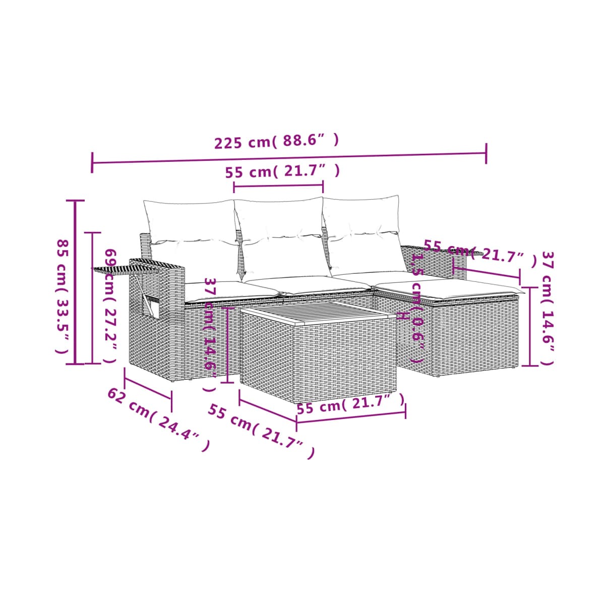 Este conjunto de sofás de jardín es el complemento perfecto para el jardín, terraza o patio, ya que proporciona un espacio confortable y acogedor para charlar con familiares y amigos o simplemente relajarte y disfrutar del aire libre. Material duradero: El ratán PE, también conocido como ratán sintético, es un material sintético resistente y de bajo mantenimiento que se parece al ratán natural. Es ligero, fácil de limpiar y se usa comúnmente para muebles de exterior debido a su durabilidad y propiedades resistentes a la intemperie.Función de almacenaje con bolsa impermeable: Cada asiento de jardín cuenta con espacio de almacenamiento debajo del asiento, completo con una bolsa resistente al agua para guardar cojines, juguetes y otros artículos. Las bolsas interiores tienen una cubierta superior y pueden fijarse firmemente a los asientos con cierres adhesivos para mayor estabilidad.Superficie estable y fácil de limpiar: Esta mesa de jardín tiene una superficie de madera de acacia que es resistente, duradero y fácil de limpiar con un paño húmedo.Práctica mesa auxiliar: Este mueble de exterior cuenta con una mesa auxiliar plegable con un resorte de gas en los reposabrazos, lo que proporciona un lugar conveniente para mantener tus elementos esenciales al alcance de la mano.Diseño modular: Este conjunto de muebles de exterior tiene un diseño modular, por lo que es completamente flexible y fácil de mover, para que puedas crear una disposición de muebles de exterior personalizada. Información útil:Para asegurarte de que tus muebles de exterior se mantengan hermosos, recomendamos protegerlos con una funda impermeable.