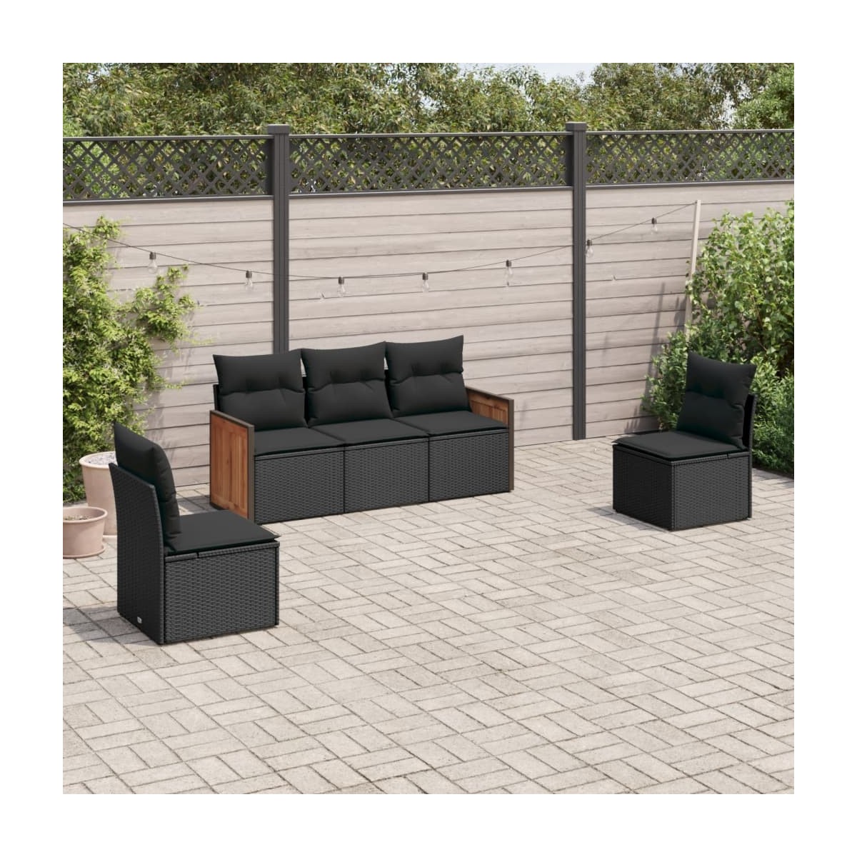 Este conjunto de sofás de jardín es el complemento perfecto para el jardín, terraza o patio, ya que proporciona un espacio confortable y acogedor para charlar con familiares y amigos o simplemente relajarte y disfrutar del aire libre. Material duradero: El ratán PE, también conocido como ratán sintético, es un material sintético resistente y de bajo mantenimiento que se parece al ratán natural. Es ligero, fácil de limpiar y se usa comúnmente para muebles de exterior debido a su durabilidad y propiedades resistentes a la intemperie.Experiencia de asiento cómoda: Estos muebles de exterior, completos con cojines acolchados gruesos, ofrecen una experiencia de asiento cómoda.Funda desenfundable y lavable: Estos cojines de asiento cuentan con fundas desenfundables para facilitar el lavado y mantenimiento.Diseño modular: Este conjunto de muebles de exterior tiene un diseño modular, por lo que es completamente flexible y fácil de mover, para que puedas crear una disposición de muebles de exterior personalizada. Información útil:Para asegurarte de que tus muebles de exterior se mantengan hermosos, recomendamos protegerlos con una funda impermeable.