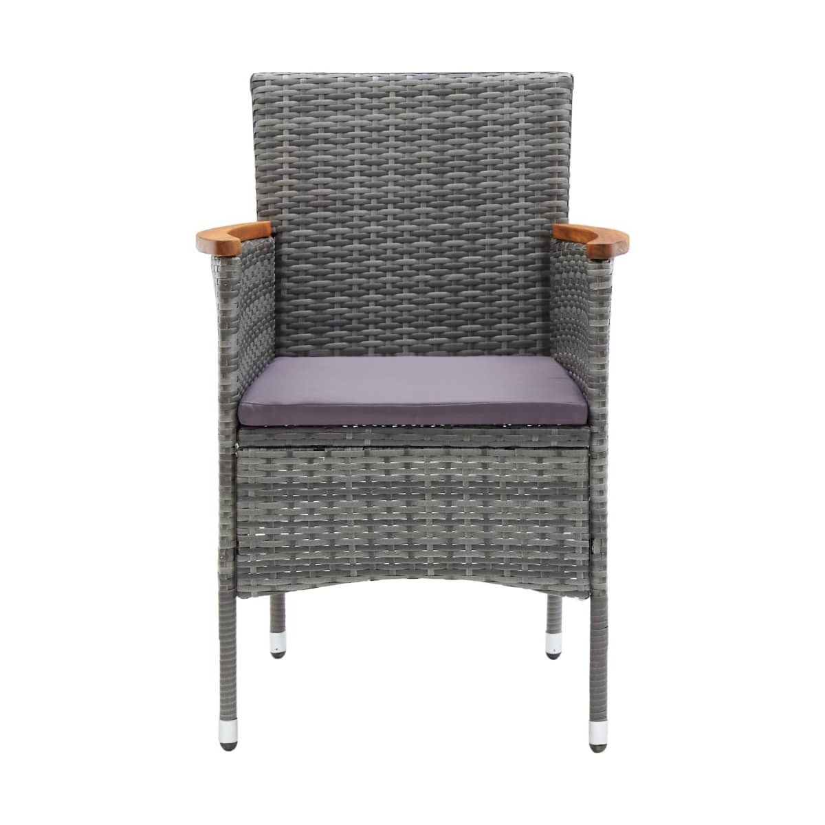 ¡Crea una estética atractiva y cohesionada en el espacio al aire libre de tu casa con este juego de comedor para jardín! Esta mesa de exterior está hecha de madera maciza de acacia, lo que la hace robusta y estable. La superficie con acabado de aceite también facilita la limpieza de la mesa con un paño húmedo. Además, las patas curvas contribuyen a su elegante diseño. Con una estructura de acero cubierto con ratán PE resistente a la intemperie, estas sillas de comedor son robustas y fáciles de limpiar. Los cojines acolchados gruesos añaden comodidad en tu tiempo de descanso. Nota: Para prolongar la vida útil de los muebles de exterior, te recomendamos que los limpies con regularidad y no los dejes al aire libre sin protección innecesariamente.Limpieza: Usar una solución de jabón suaveAlmacenamiento: Si es posible, guarda el producto en un lugar fresco y seco en el interior. Si el producto se almacena al aire libre, protégelo con una funda impermeable. Limpia y seca el exceso de agua o nieve de las superficies planas después de una lluvia o nevada. Permite la ventilación para evitar daños relacionados con la humedad.