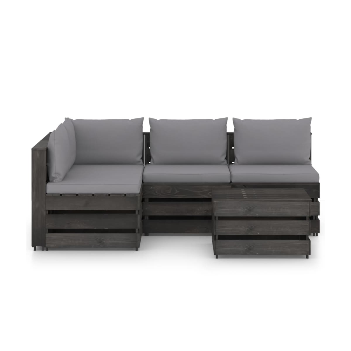 Este juego de muebles para jardín está pensado para ser la opción ideal para relajarse y disfrutar del buen tiempo, echar una siesta o charlar con tu familia o amigos. Con un diseño de palés atemporal, el conjunto de sofás de madera añade un toque de encanto rústico a tu patio, jardín o sala de estar. Fabricado en madera de pino impregnada, el juego de salón de palés es duradero y resistente a la intemperie. Este conjunto de sofás de exterior tiene una construcción sólida y requiere poco mantenimiento. Combinado con cojines acolchados gruesos, el conjunto de sofás proporciona la máxima comodidad. Además, el diseño modular también permite colocar el conjunto en cualquier disposición según tu gusto. Nota: Para prolongar la vida de tus muebles de exterior, te recomendamos que los protejas con una funda impermeable.