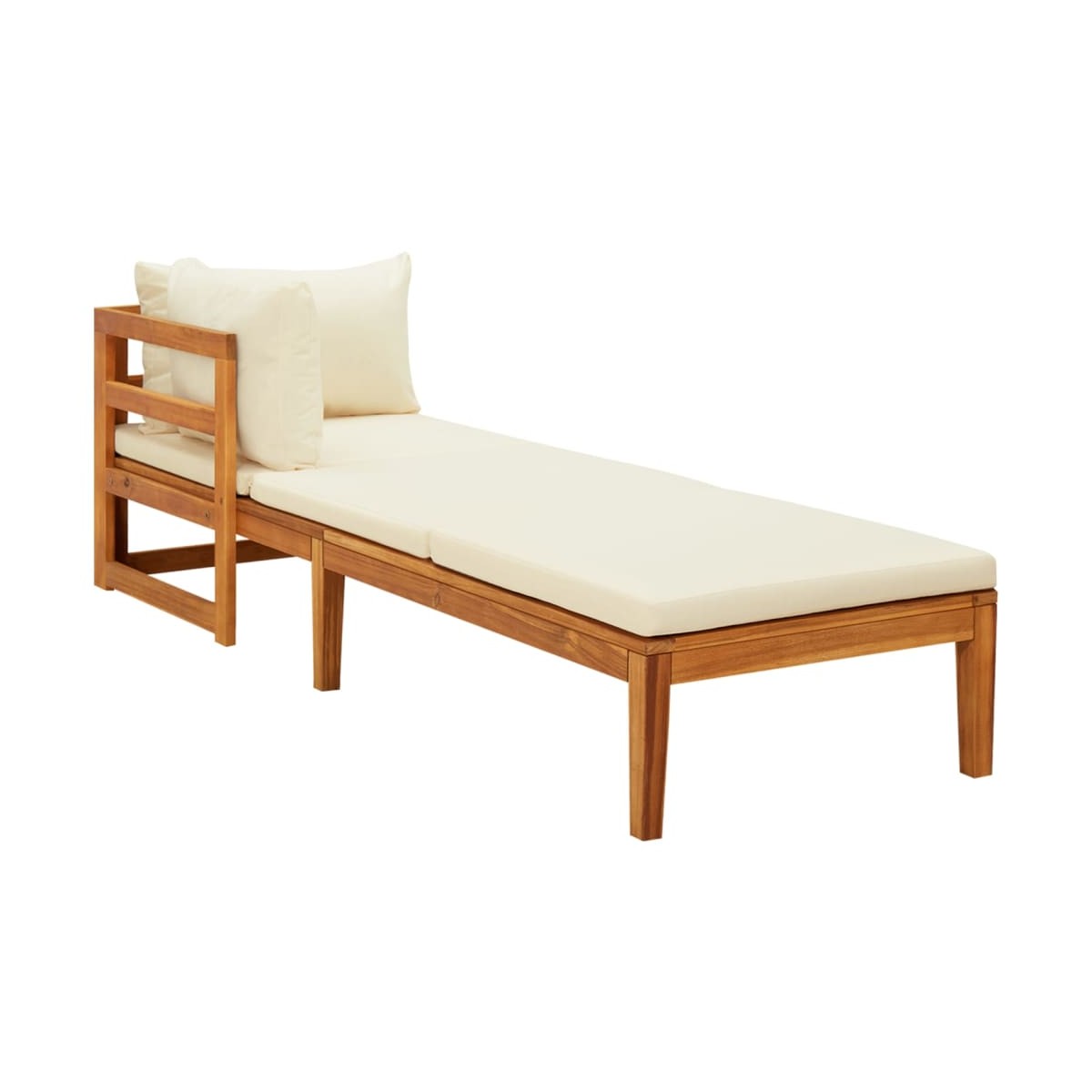 ¡Disfruta de un agradable tiempo de ocio con tus amigos o familiares en el exterior con estas tumbonas de madera! La tumbona de jardín está hecha de madera maciza de acacia, una madera dura con vetas densas. Esta tumbona de exterior bellamente diseñada es estable, duradera y llamativa. Además, la exquisita artesanía y las hermosas vetas de la madera hacen que cada pieza sea ligeramente diferente de la siguiente. Los cojines incluidos añaden más comodidad mientras descansas. Además, el reposabrazos se puede montar tanto en el lado izquierdo como en el derecho. Nota: Para prolongar la vida útil de los muebles de exterior, te recomendamos que los limpies con regularidad y no los dejes al aire libre sin protección innecesariamente.Limpia: Usa una solución de jabón suave.Almacenamiento: Si es posible, guarda el producto en un lugar fresco y seco en el interior. Si el producto se almacena al aire libre, protégelo con una funda impermeable. Limpia y seca el exceso de agua o nieve de las superficies planas después de una lluvia o nevada. Permite la ventilación para evitar daños relacionados con la humedad.